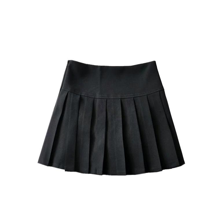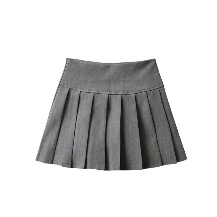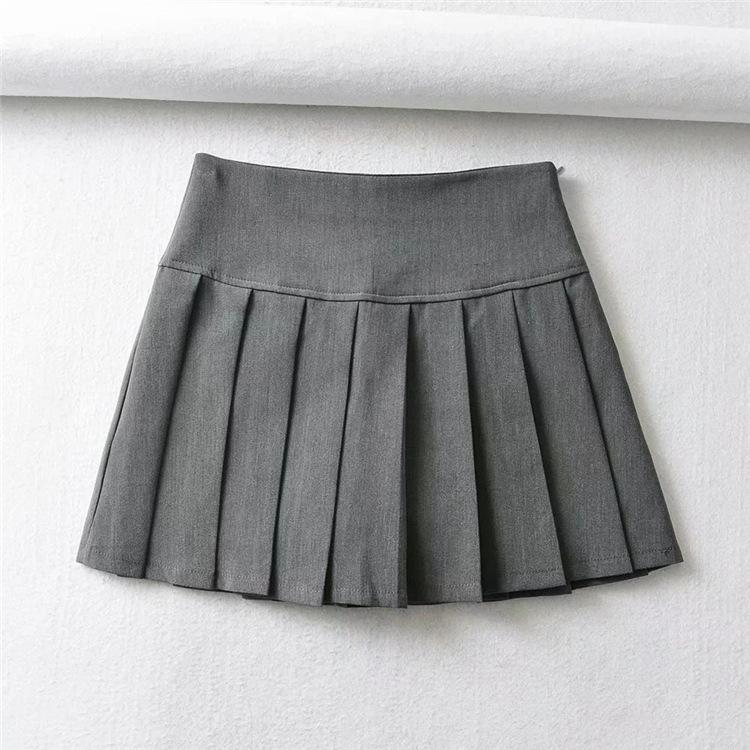 Falda corta de primavera para mujer, estilo universitario, antiedad, antideslumbrante, plisada, estilo retro, de color sólido, de cintura alta.