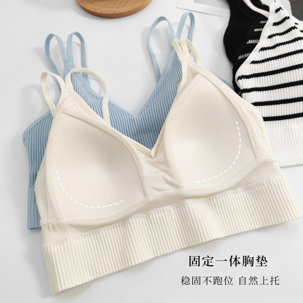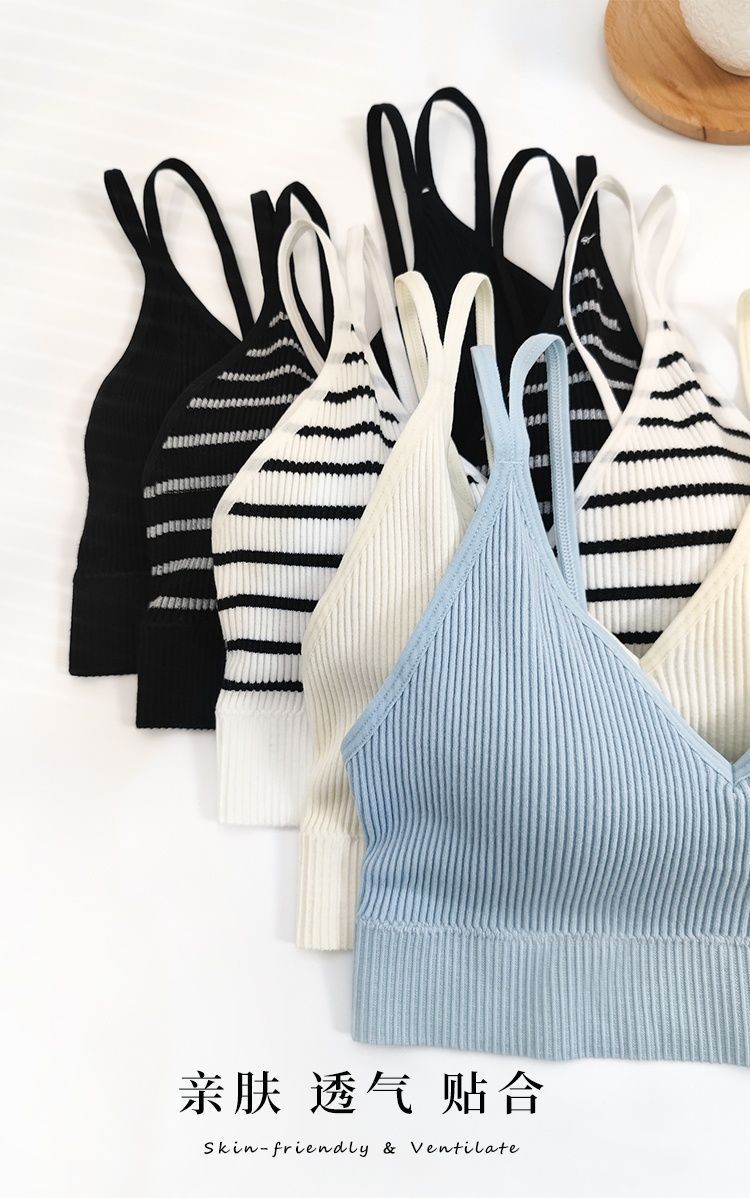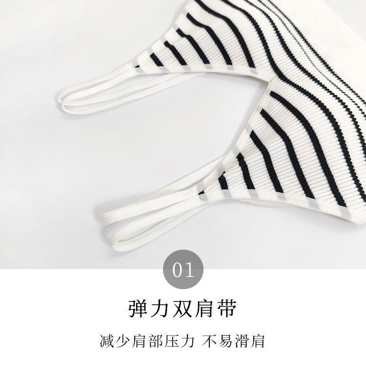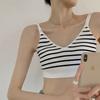 Ropa interior sexy todo en uno con espalda hermosa, chaleco fino a rayas con doble tirante para mujer, chaleco deportivo sin tirantes con pecho pequeño