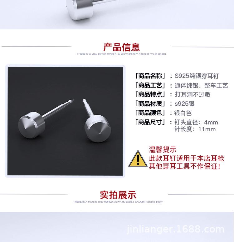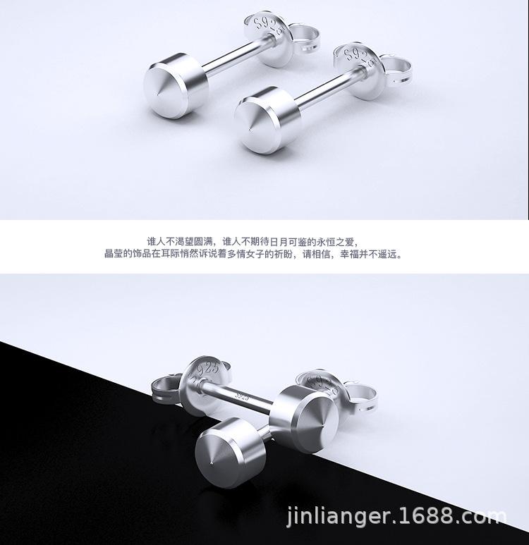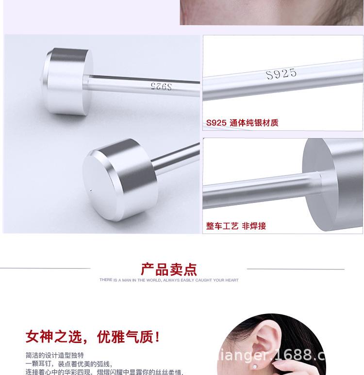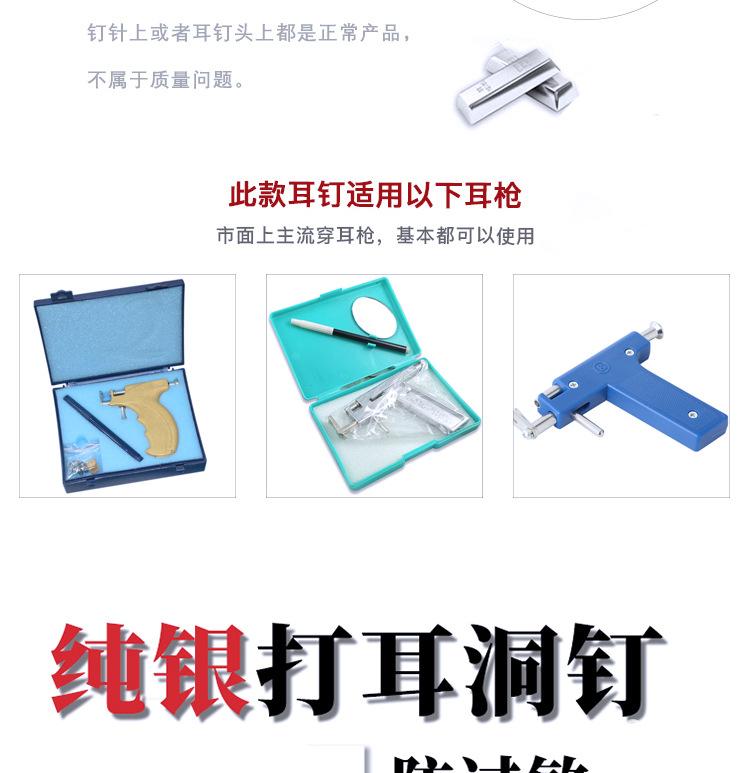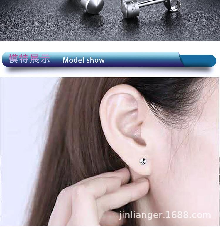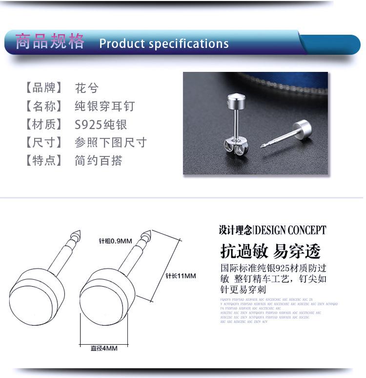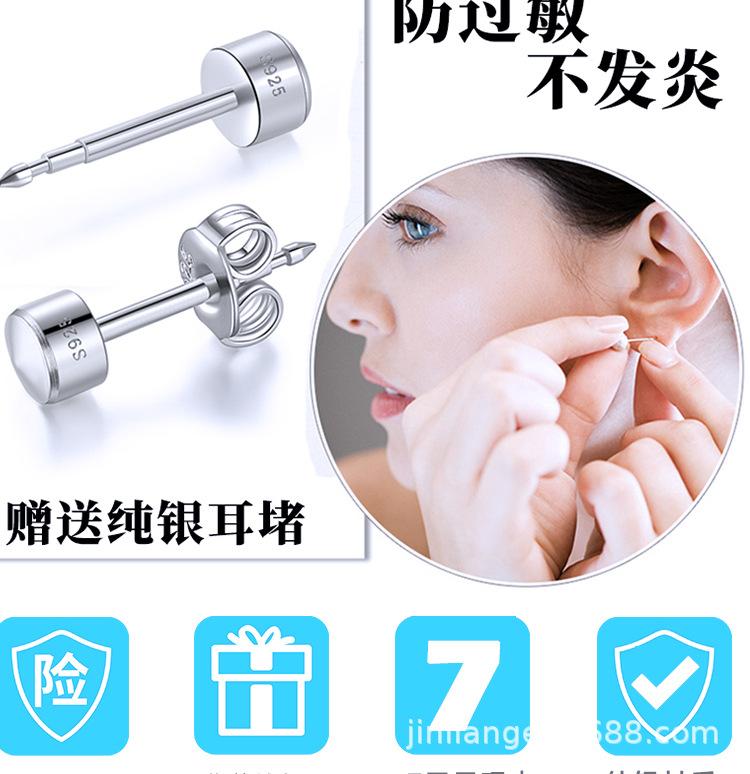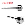 4m round head glossy sterling silver piercing nail 1 piece in bulk (with plastic ear plugs), 4m white zirconiu...
