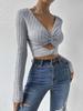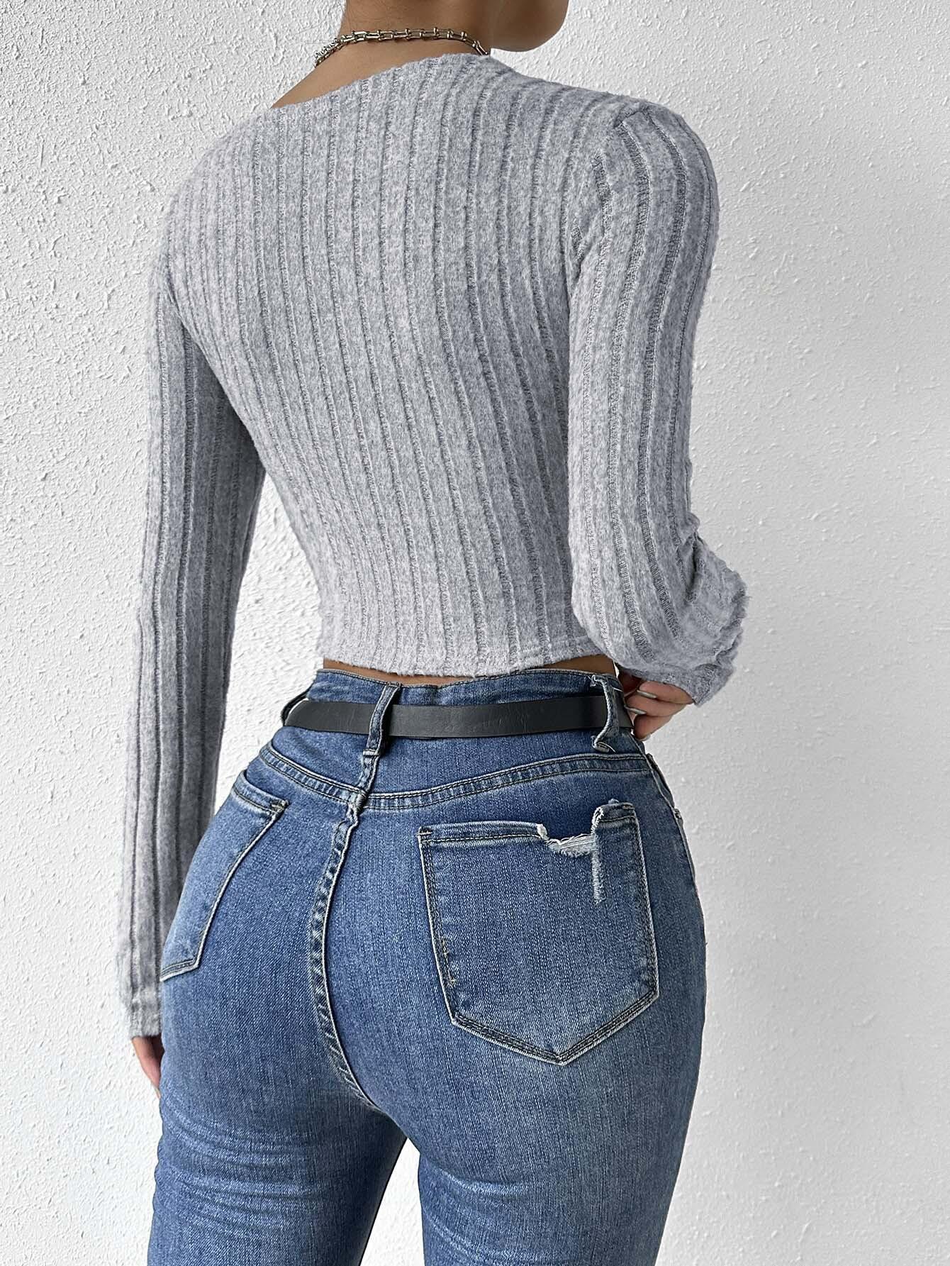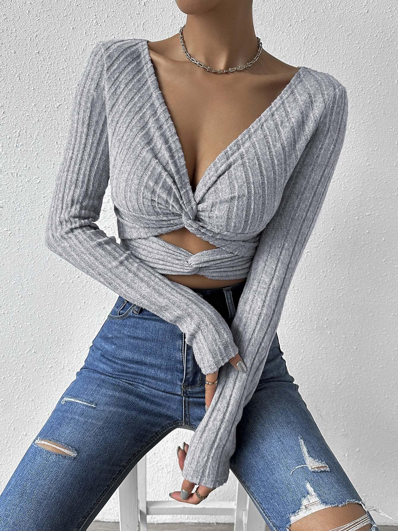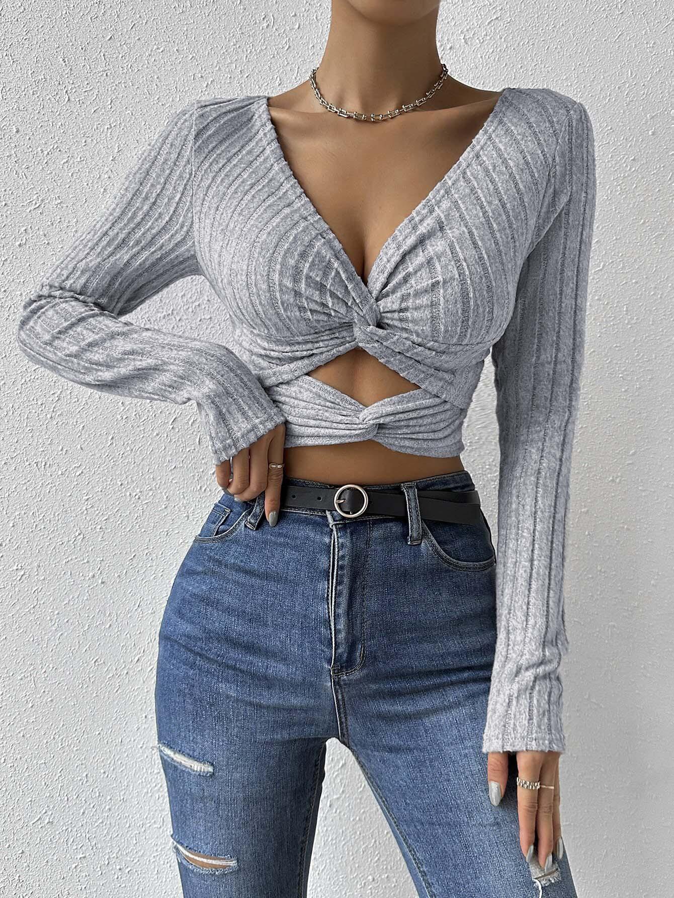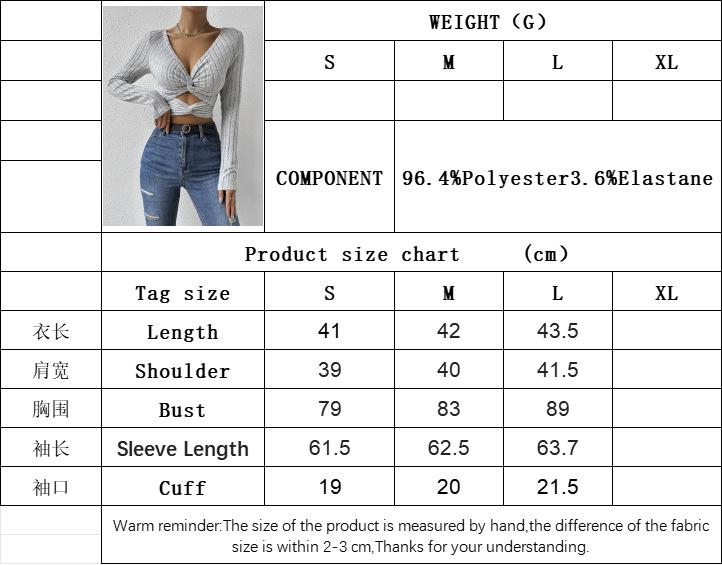 2024 Amazon Transfronterizo Ropa de Mujer Ins Sexy Camiseta de Cuello en V Otoño e Invierno Máquina Cary Slim Top Corto