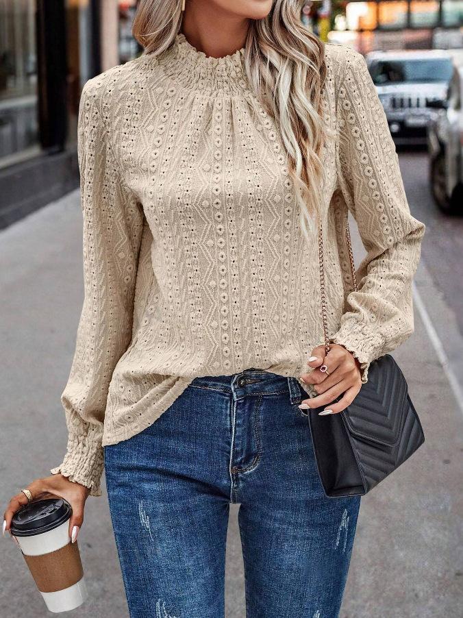 Ropa de Mujer Transfronteriza Europea y Americana 2025 Amazon Estación Independiente Otoño e Invierno Nuevo Top de Manga Larga con Cuello Redondo Jacquard