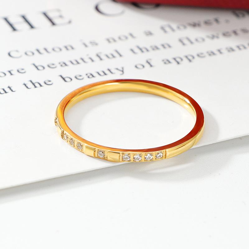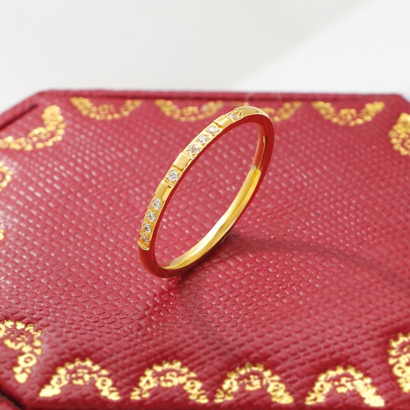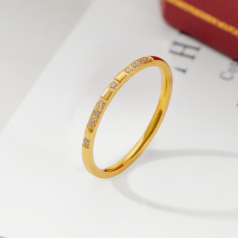 Anillo de acero de titanio con diamantes y circonita 1314 de estilo Ins sin color, diseño de nicho, simple y exquisito.
