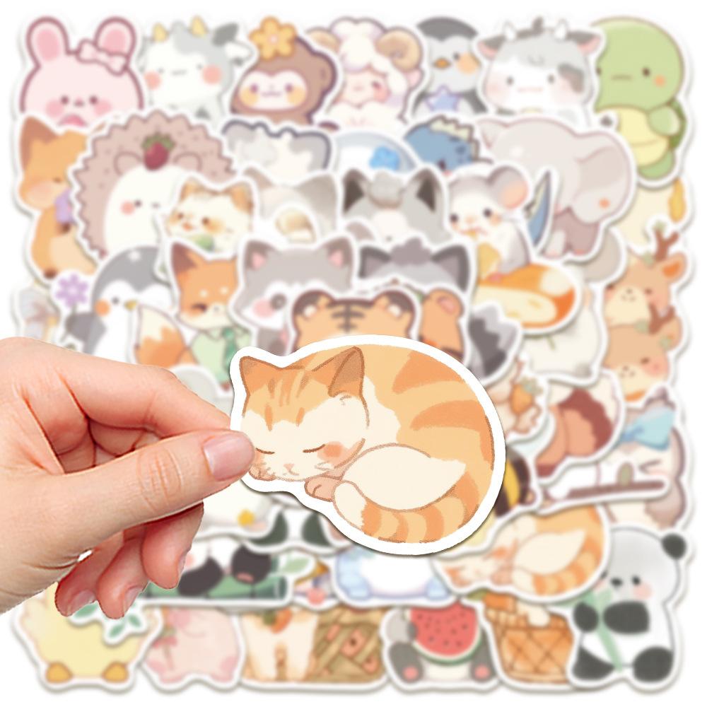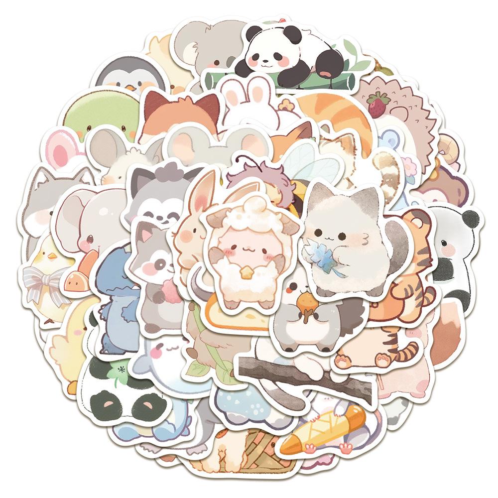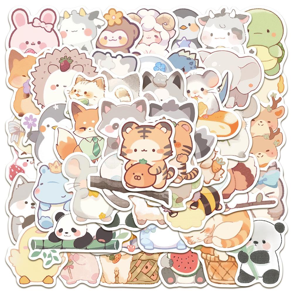 50 pegatinas de animales en versión Q, bonitas pegatinas de dibujos animados para decoración de fundas de teléfono y portátiles, pegatinas transfronterizas