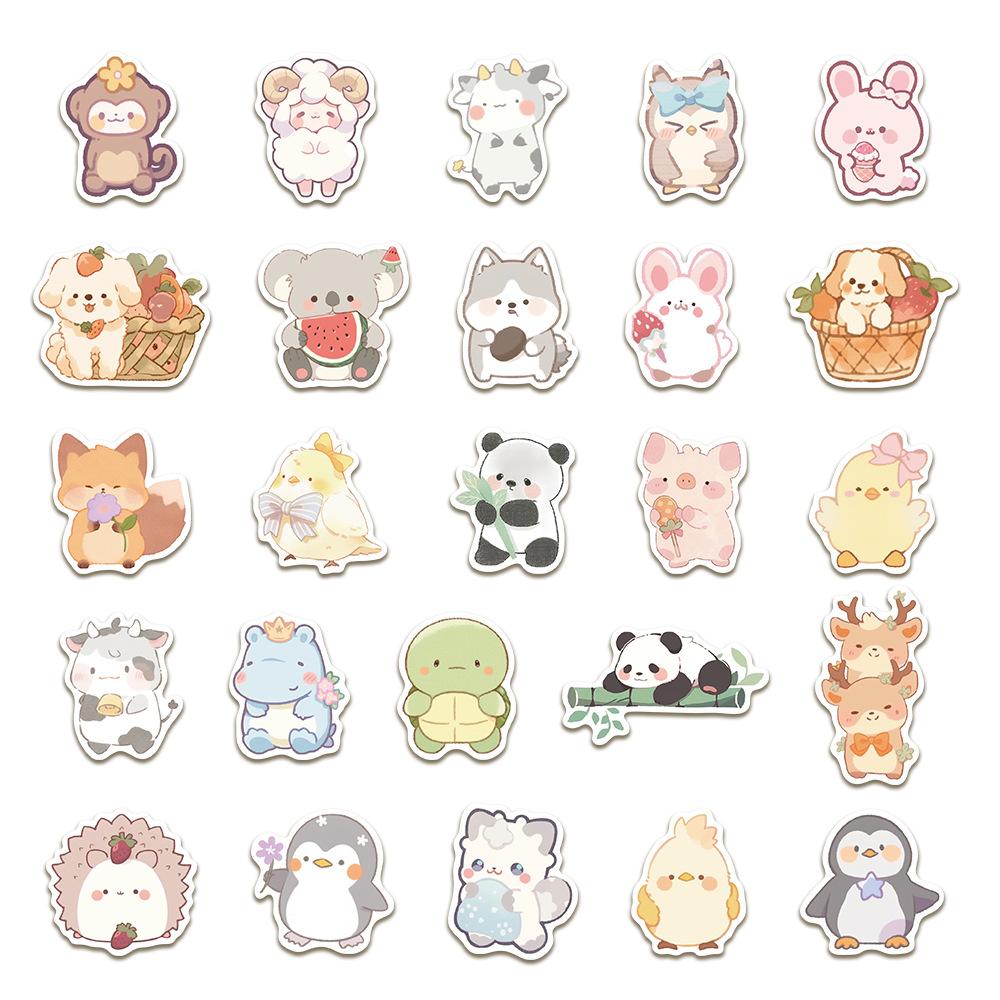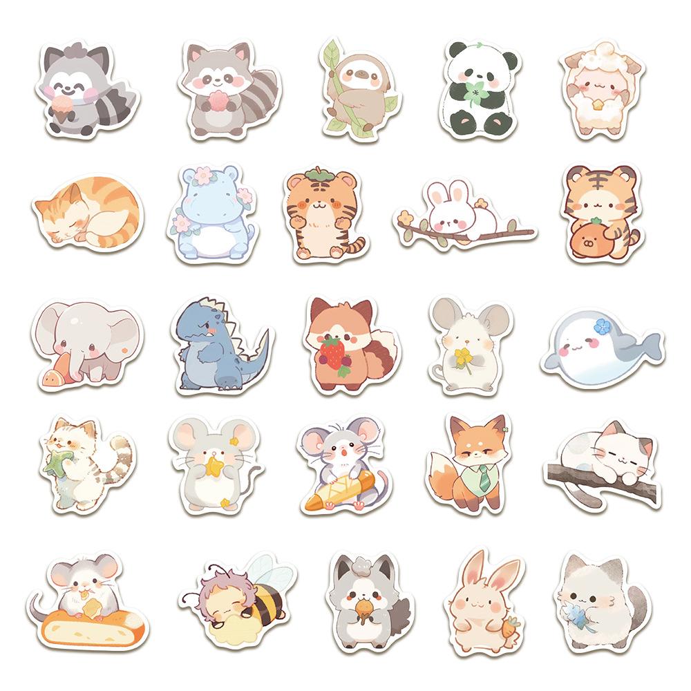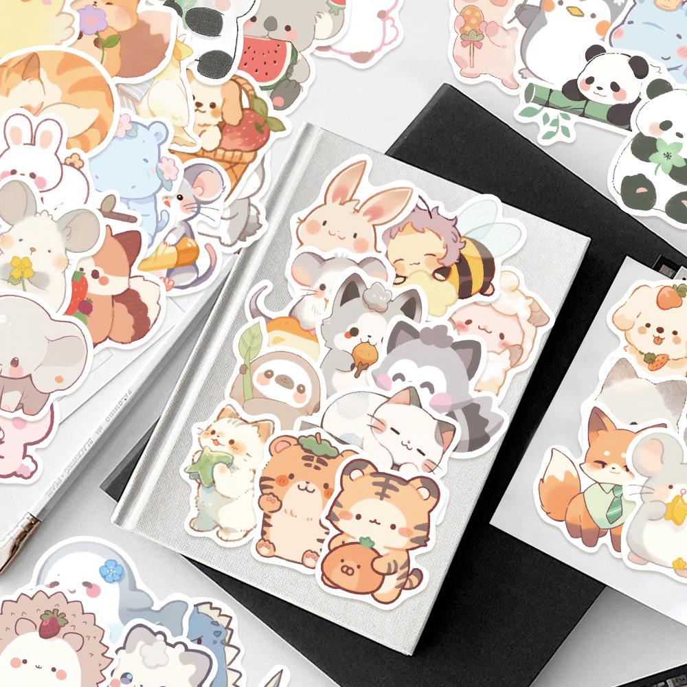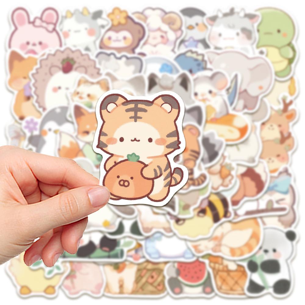 50 pegatinas de animales en versión Q, bonitas pegatinas de dibujos animados para decoración de fundas de teléfono y portátiles, pegatinas transfronterizas