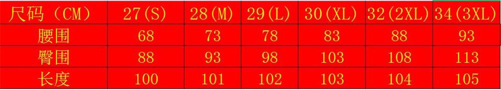 27(S), 28(M), 29(L), 30(XL), 32(2XL), 34(3XL)