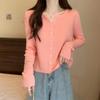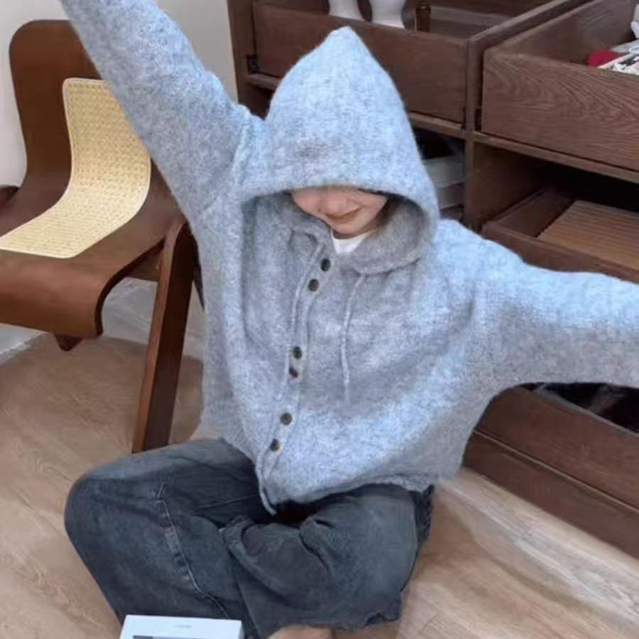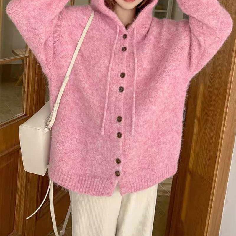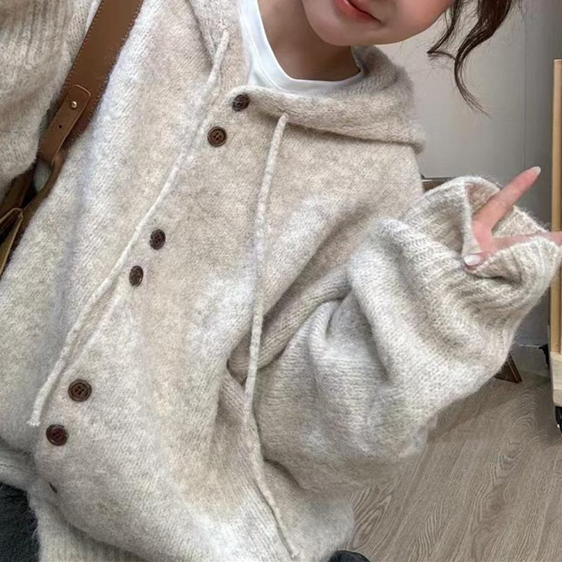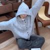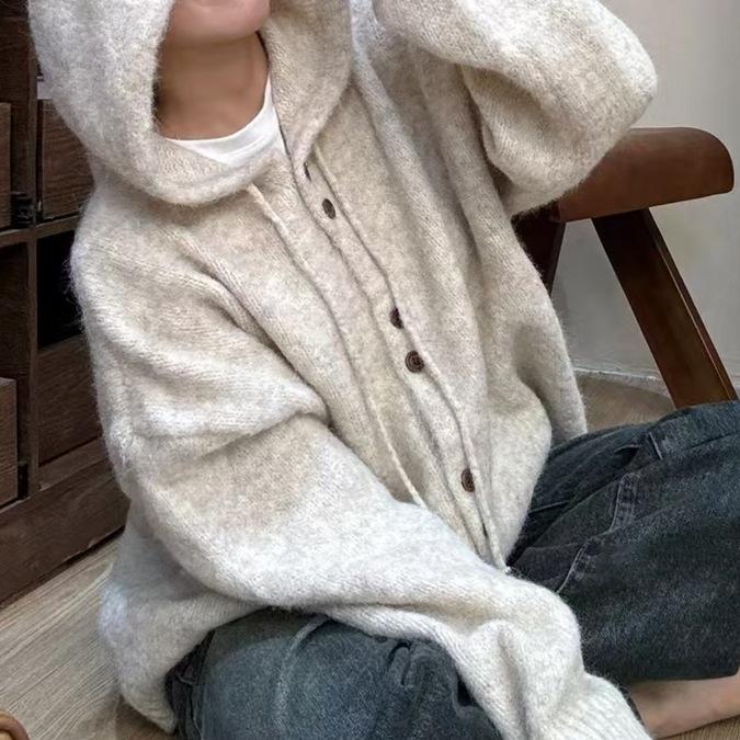 Cárdigan de punto con capucha de color liso, suave y encerado, estilo suave y holgado, para mujer, otoño e invierno 2024