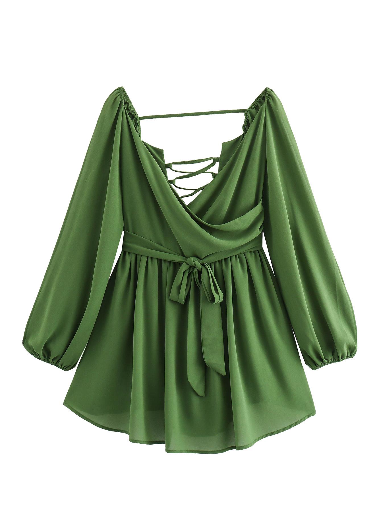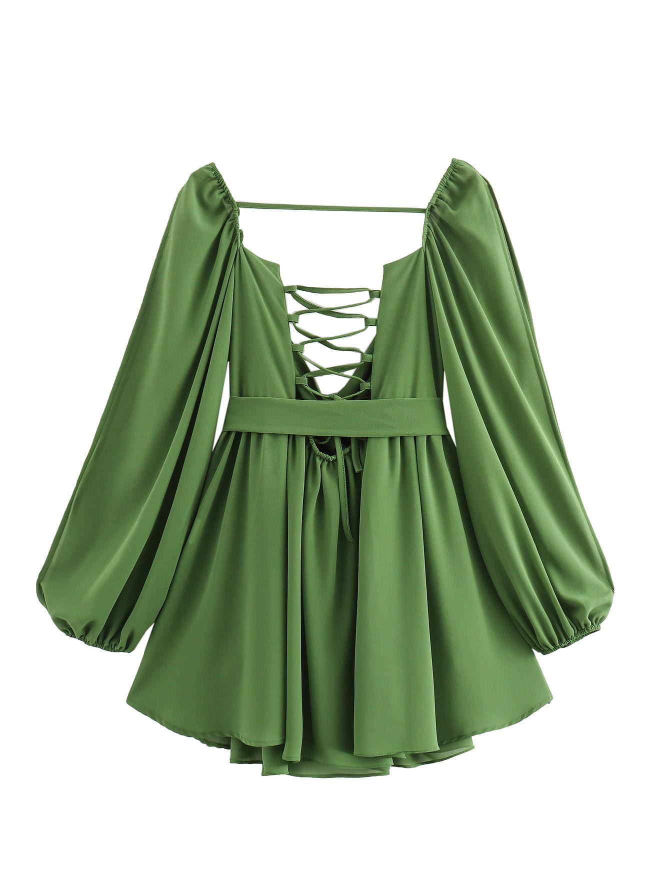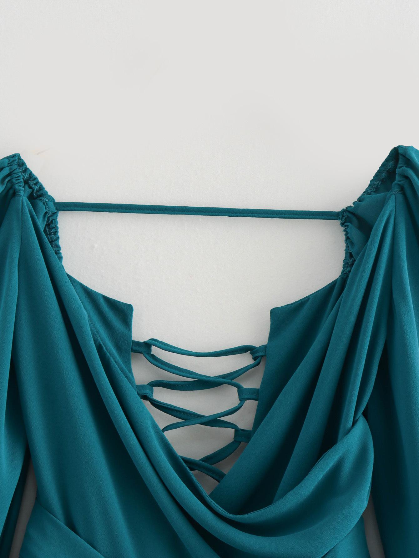 Vestido Zatrax-2024 primavera y verano estilo europeo y americano temperamento sexy 6 colores cuello V manga hombro lazo