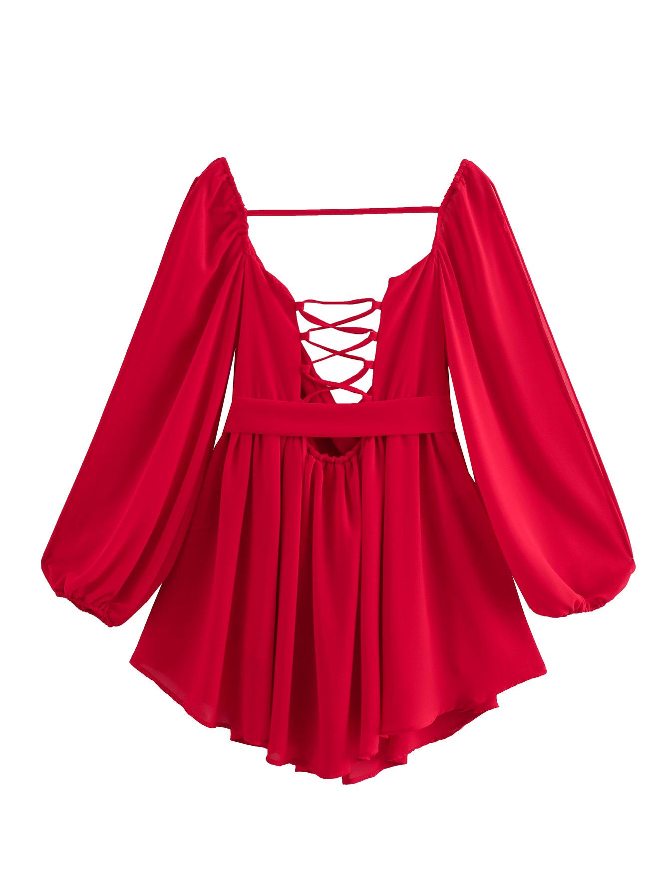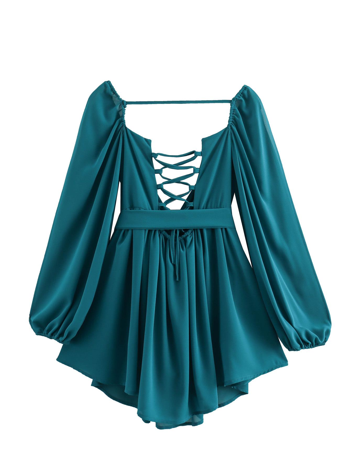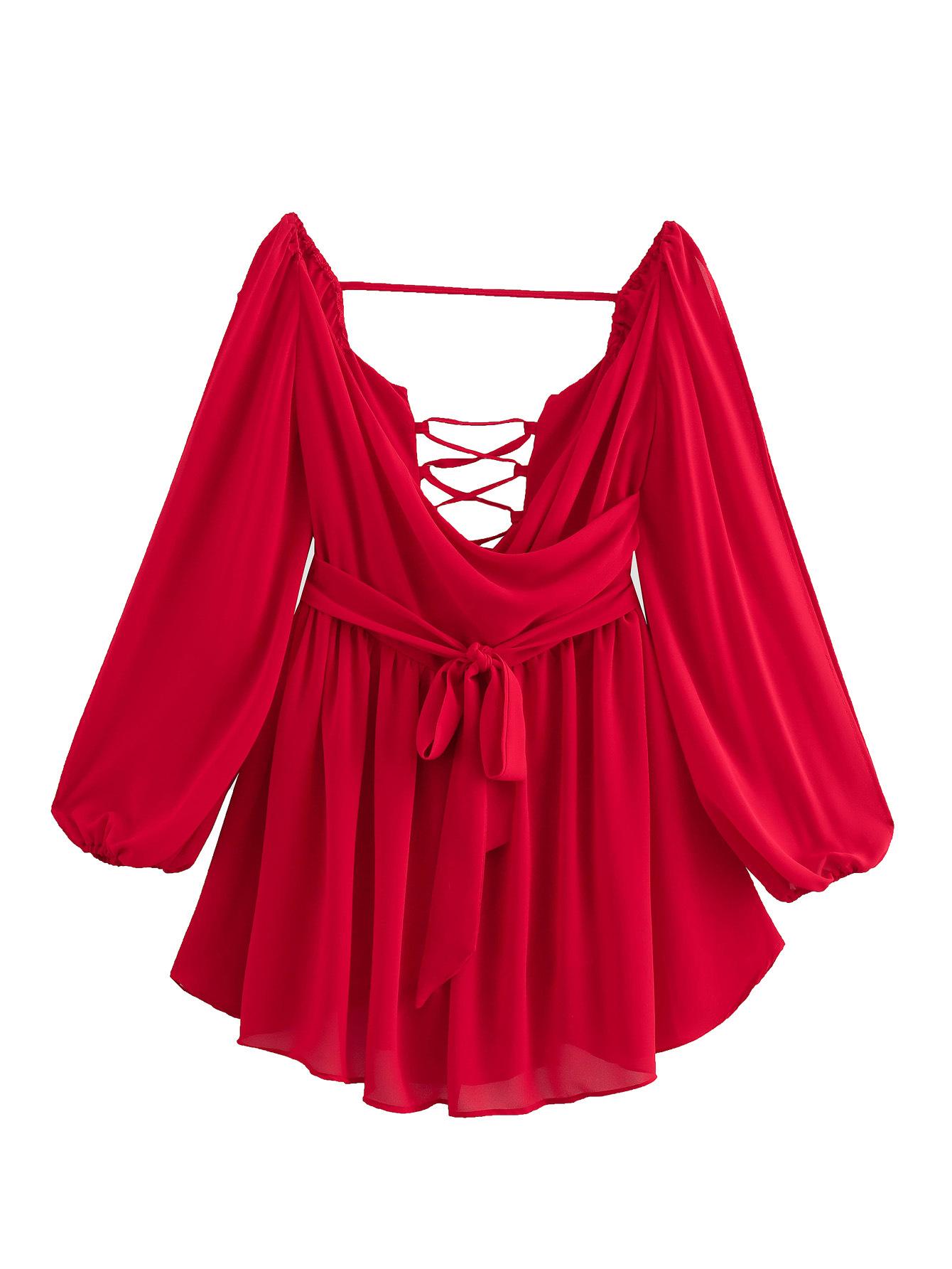 Vestido Zatrax-2024 primavera y verano estilo europeo y americano temperamento sexy 6 colores cuello V manga hombro lazo
