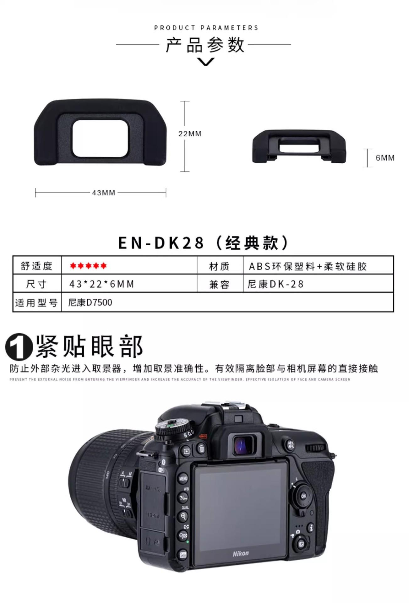 DK-21 Modelos aplicables: NikonCámaras réflex D70s/80/D90/D40/D50/D100/D200/D300/D7000. Para cámaras con una apertura de 22 mm.