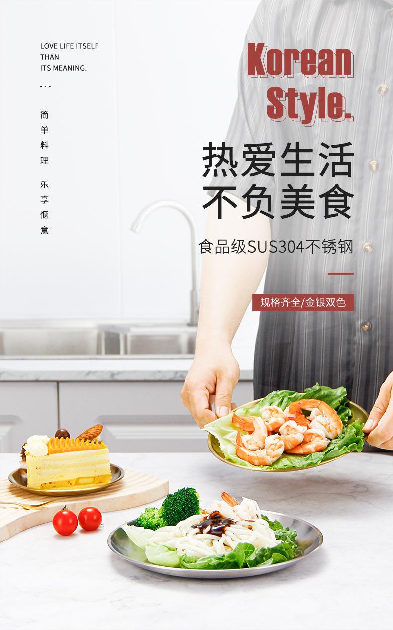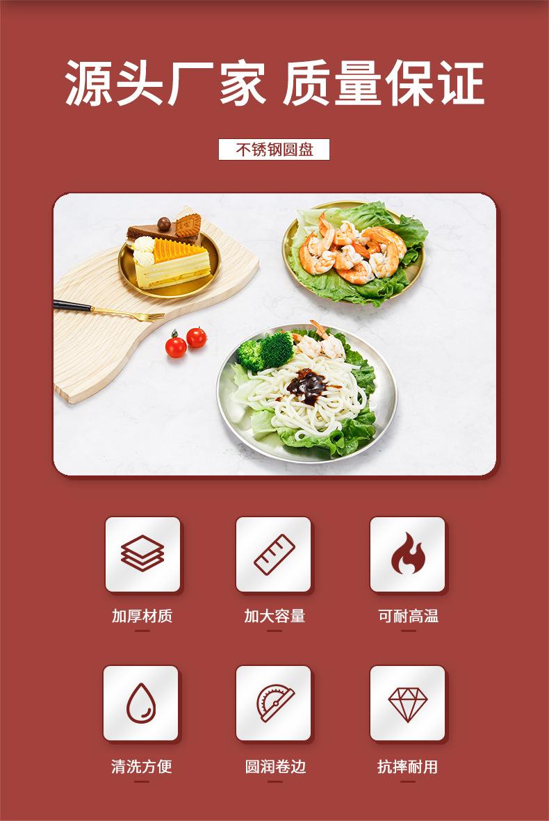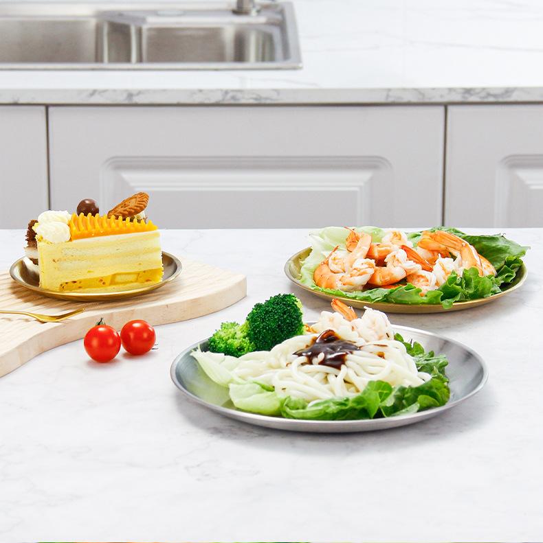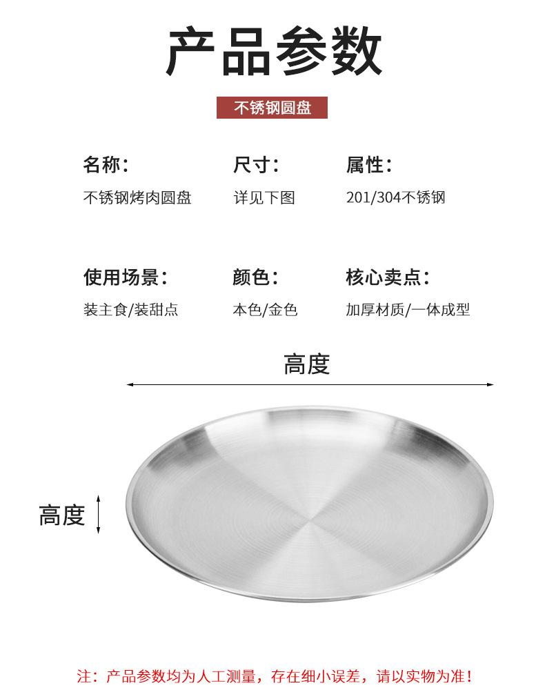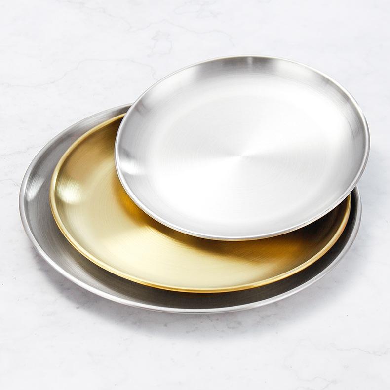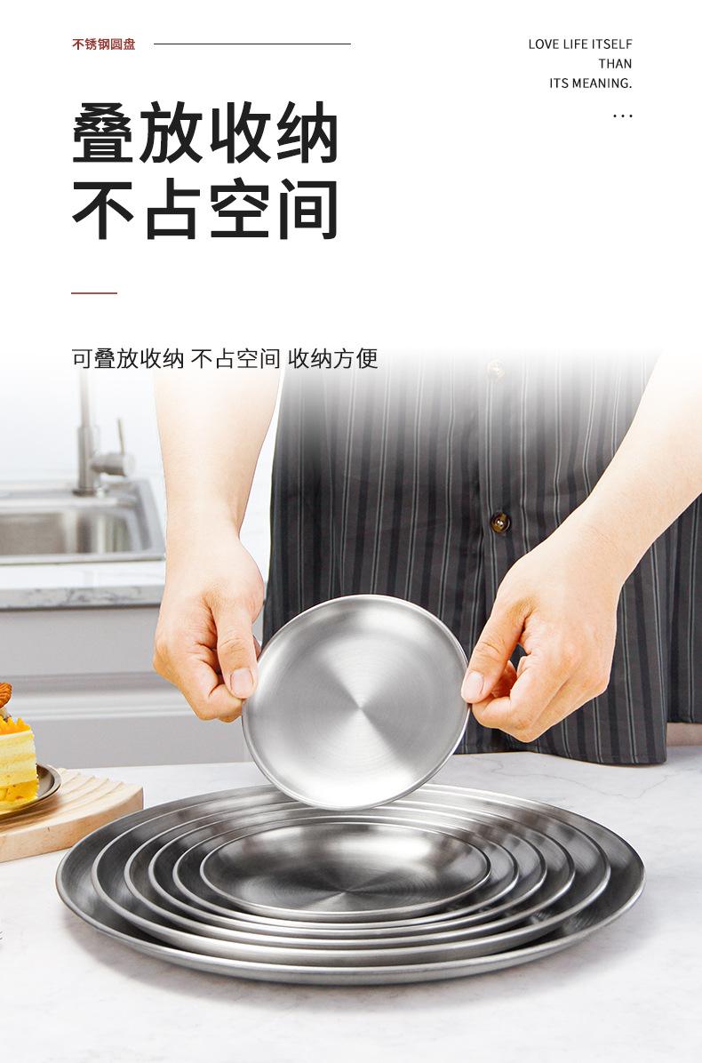 Plato Redondo de Acero Inoxidable, Plato para Servir, Plato para Postre, Plato para Cena Comercial de Acero Inoxidable, Plato para Barbacoa, Plato Bandeja, Apariencia Elegante