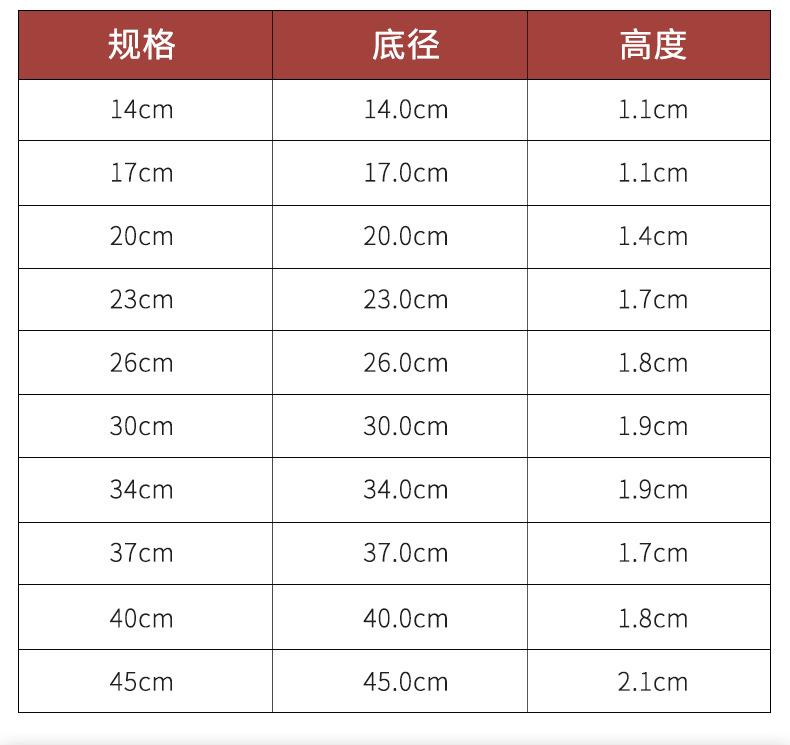 14cm, 17cm, 20cm, 23cm, 26cm, 30cm, 34cm