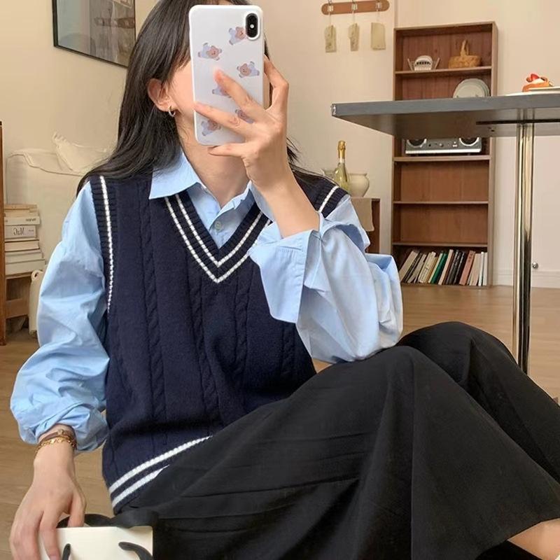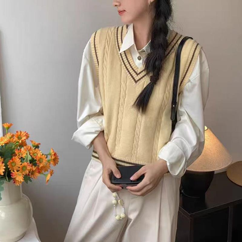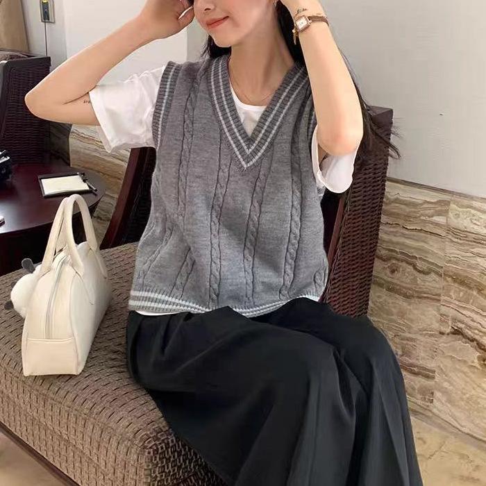 Chaleco estilo universitario para mujer, nuevo chaleco de suéter de otoño e invierno 2024, chaleco exterior de punto con hombros apilados para mujer