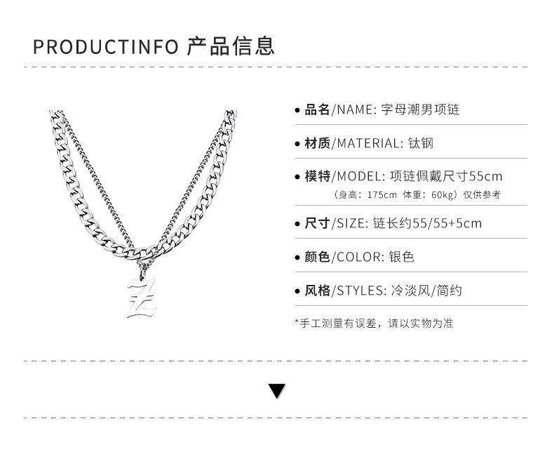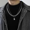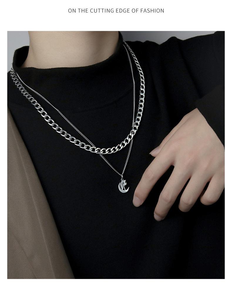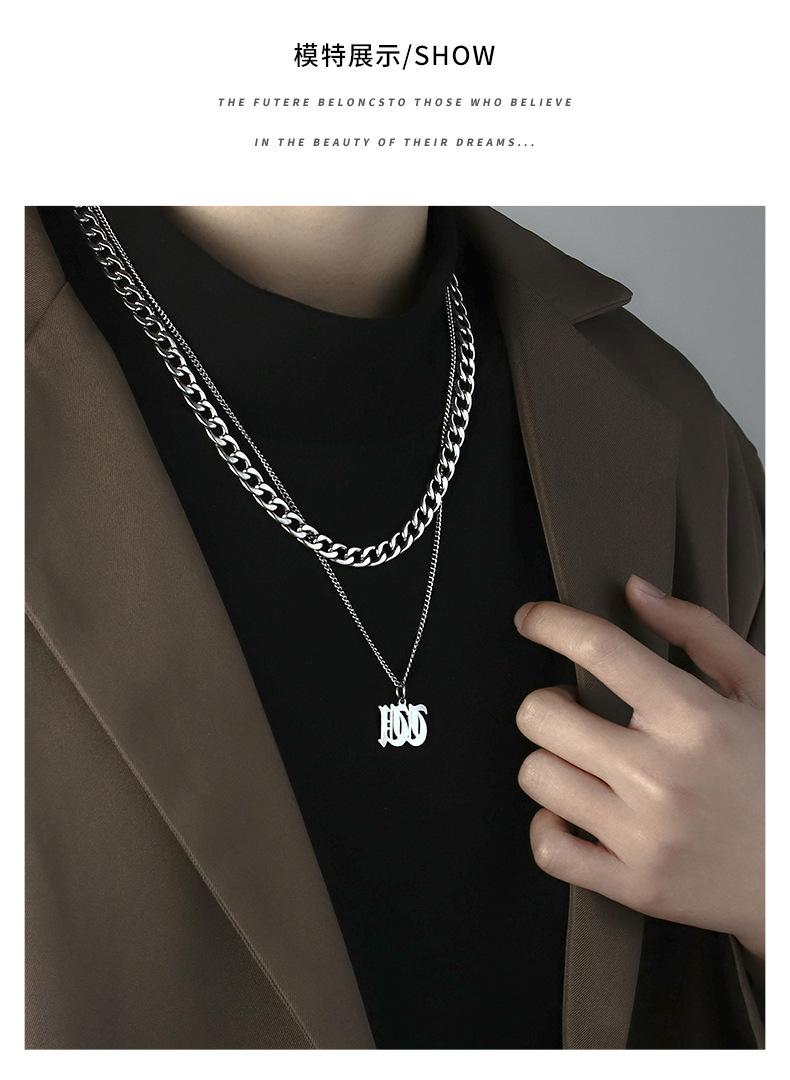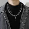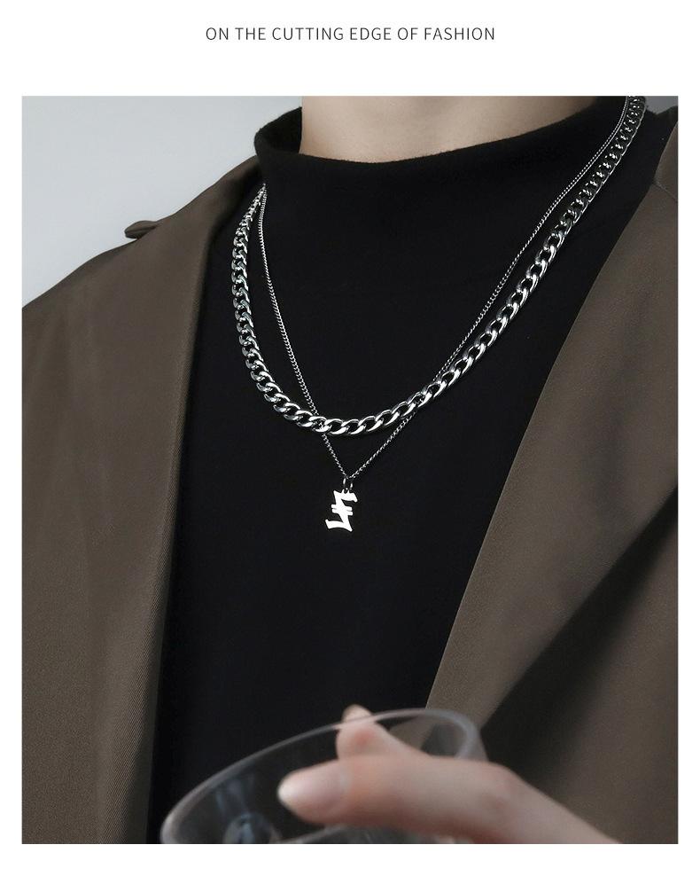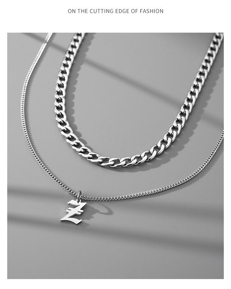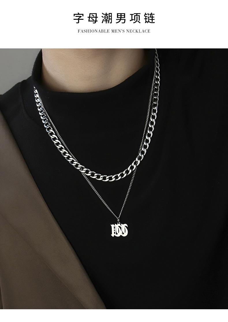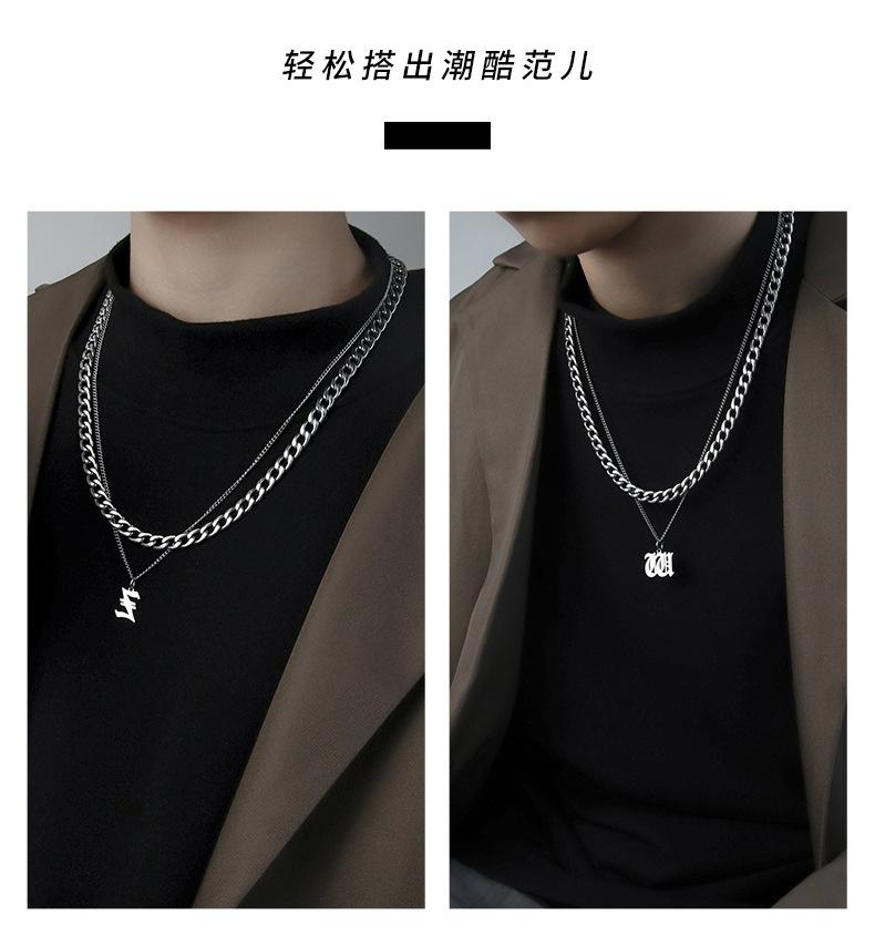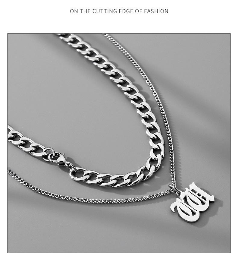 Collar Estilo Ins con Letra Inglesa Cubano Doble Capa para Hombre Acero Titanio Simple y Versátil Joyería para Hombre y Mujer Venta al por Mayor Tendencia