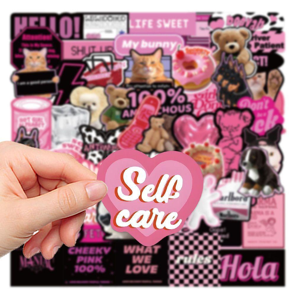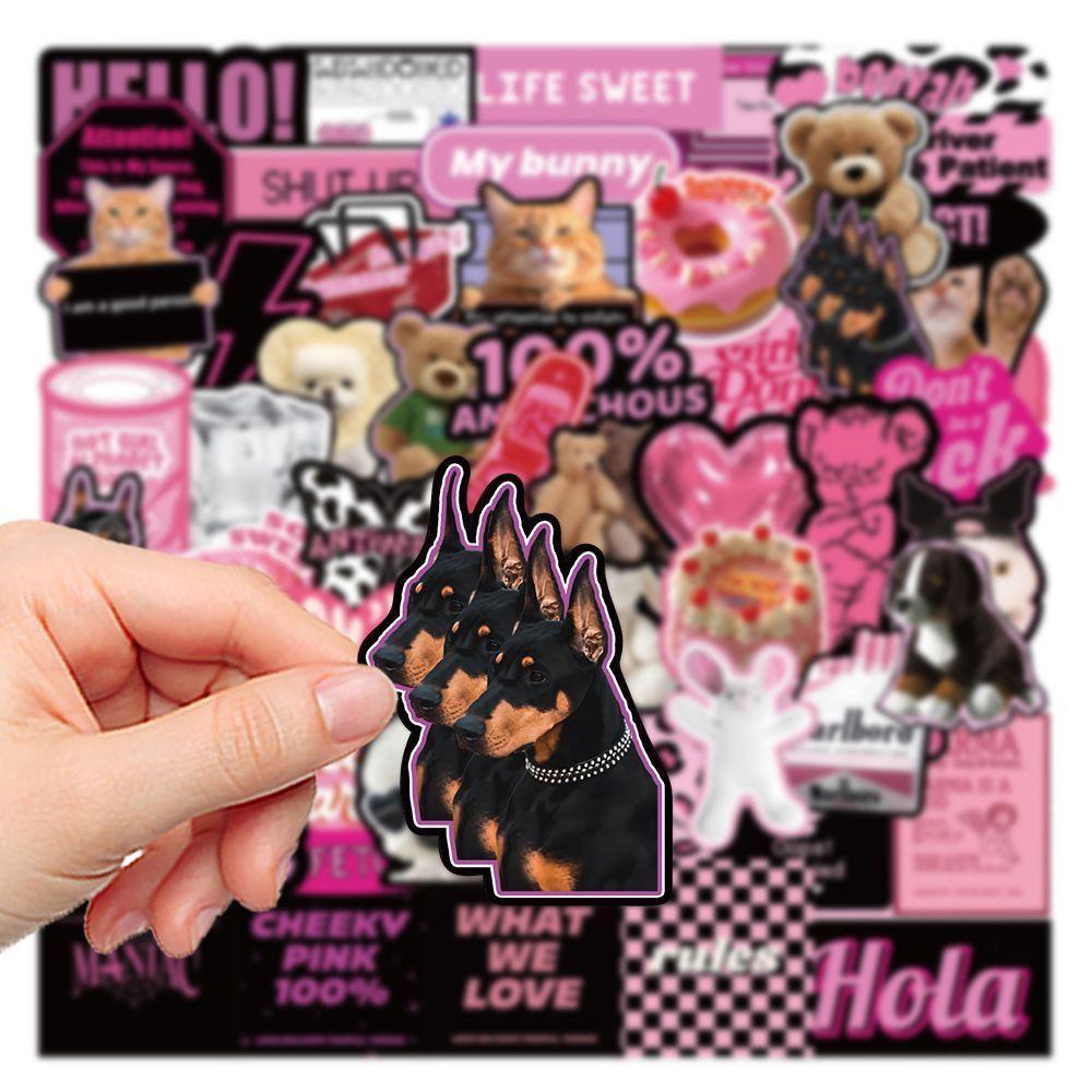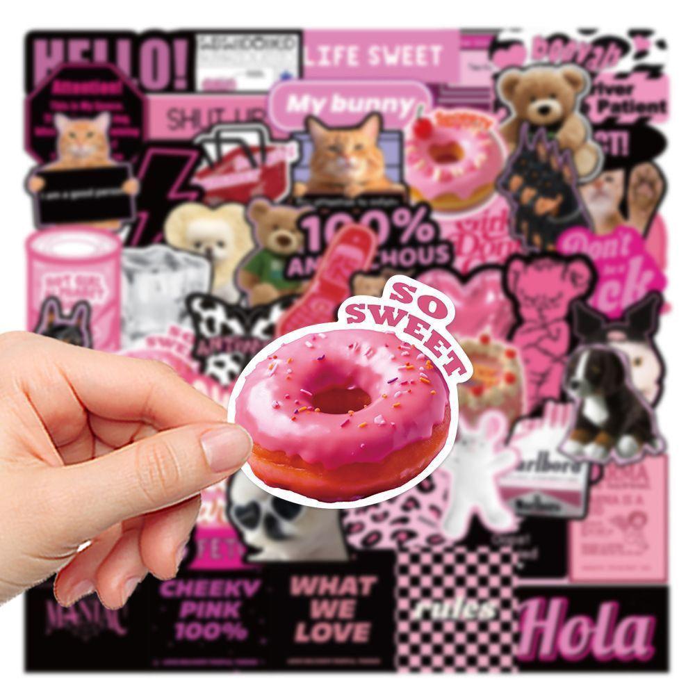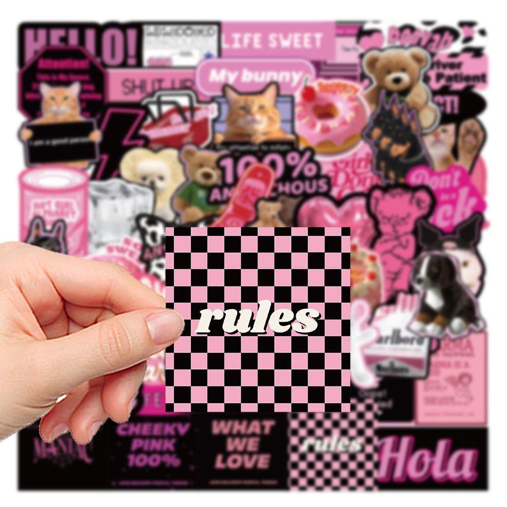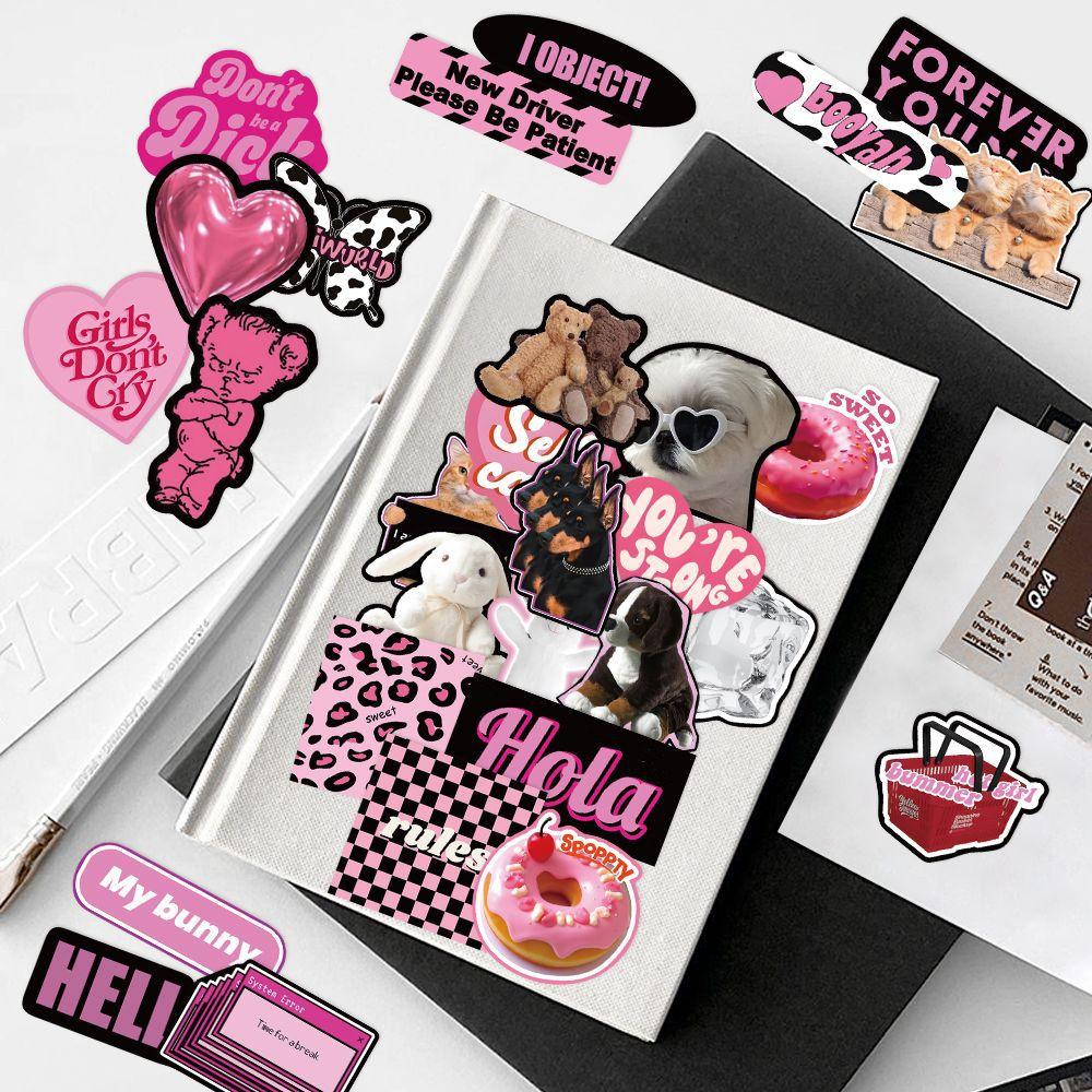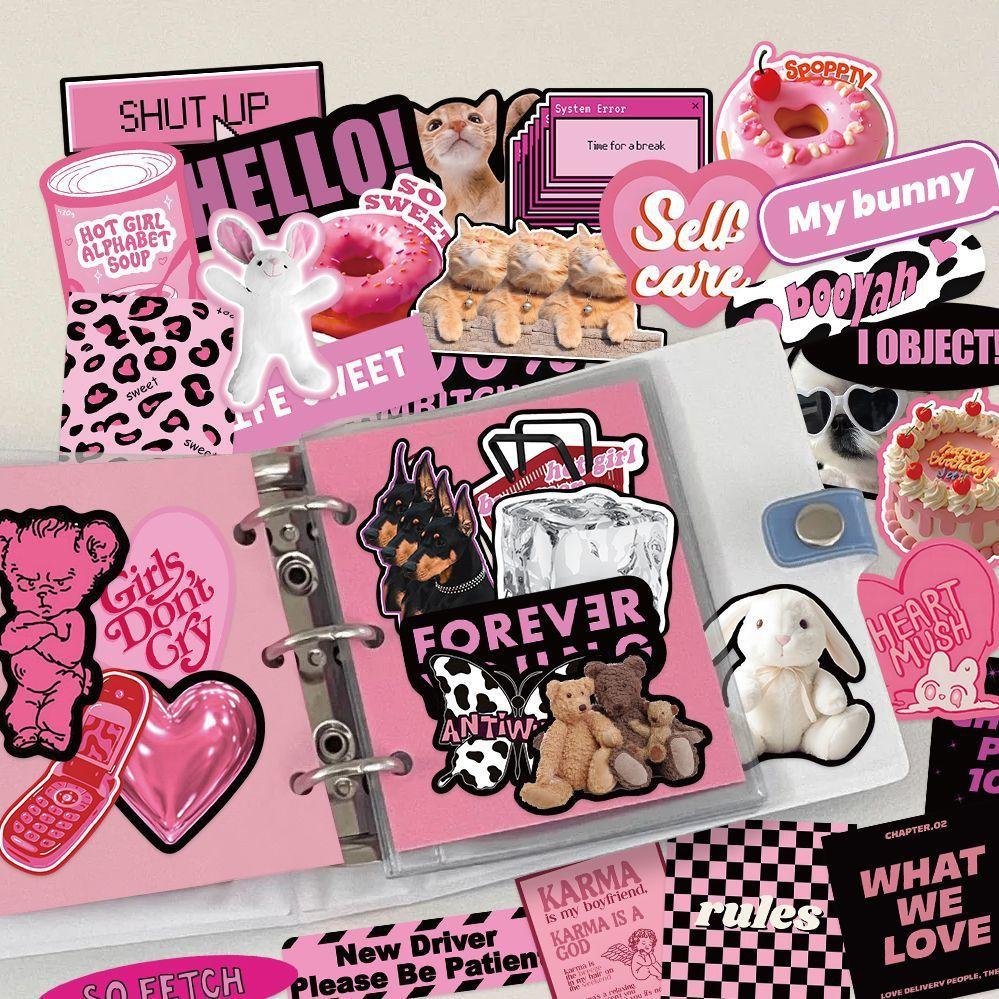 55 pegatinas en inglés con tinta rosa, pegatinas coreanas con diseño de chica dulce y genial, pegatinas para portátil y teléfono móvil, transfronterizas.