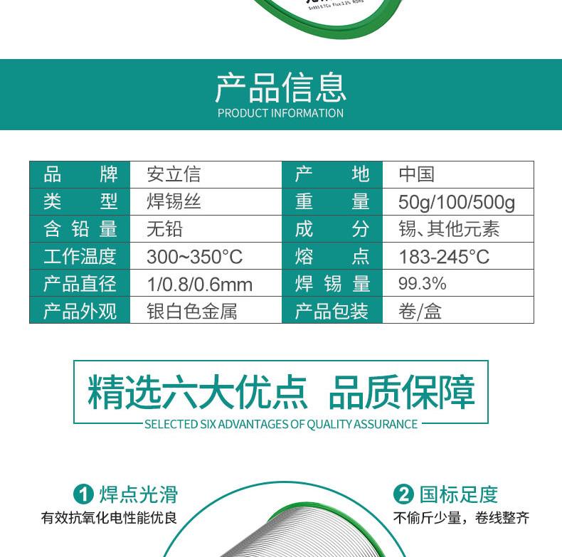 Alambre de Soldadura Ecológico Sin Plomo Anlixin 0.8mm Núcleo de Resina Baja Temperatura Soldadura de Reparación 1.0 Alambre de Soldadura Alto Estándar Zhengzhi