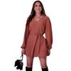 Otoño 2024 Nuevo vestido corto sencillo con cuello redondo y cordones en la cintura para mujer de color liso con Amazon transfronterizo europeo y americano