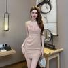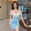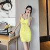 Club nocturno Sexy Falda de Cadera de Corte Bajo Cauchy Temperamento Sin Espalda Elástica Falda Ajustada Noche Vestido de Técnico para Mujer