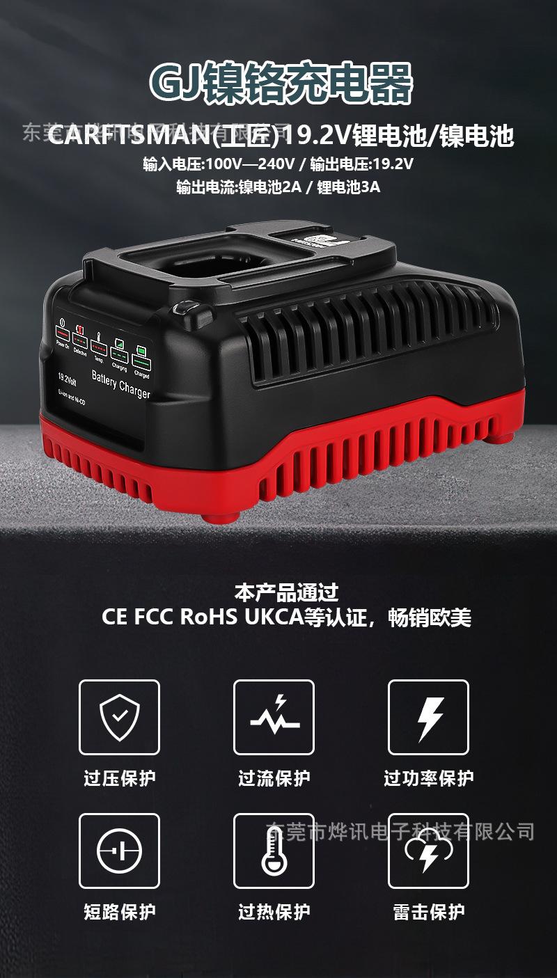 Nuevo y adecuado para herramientas eléctricas Craftsman/Carftsman de 19,2 V, batería de litio y cargador rápido de batería de níquel-cadmio.