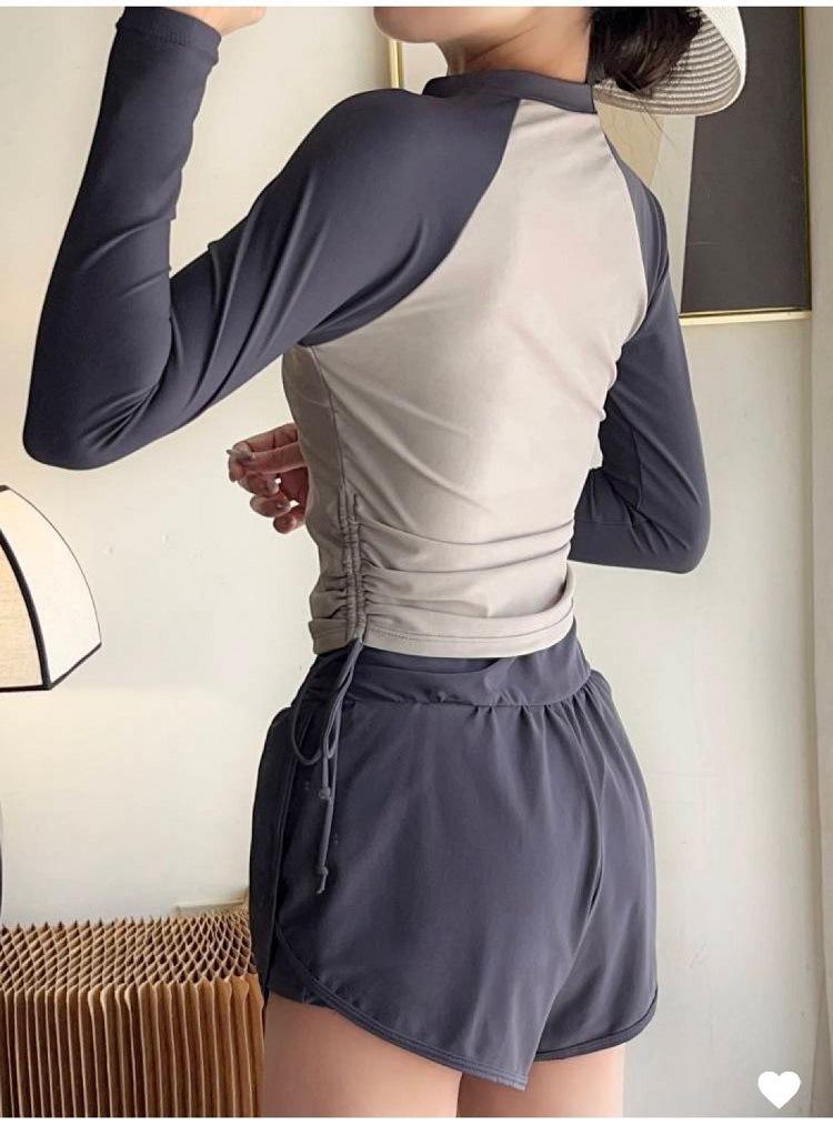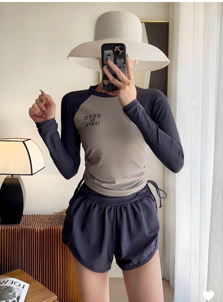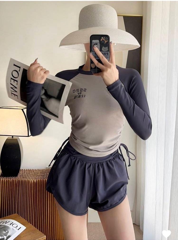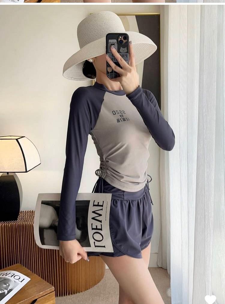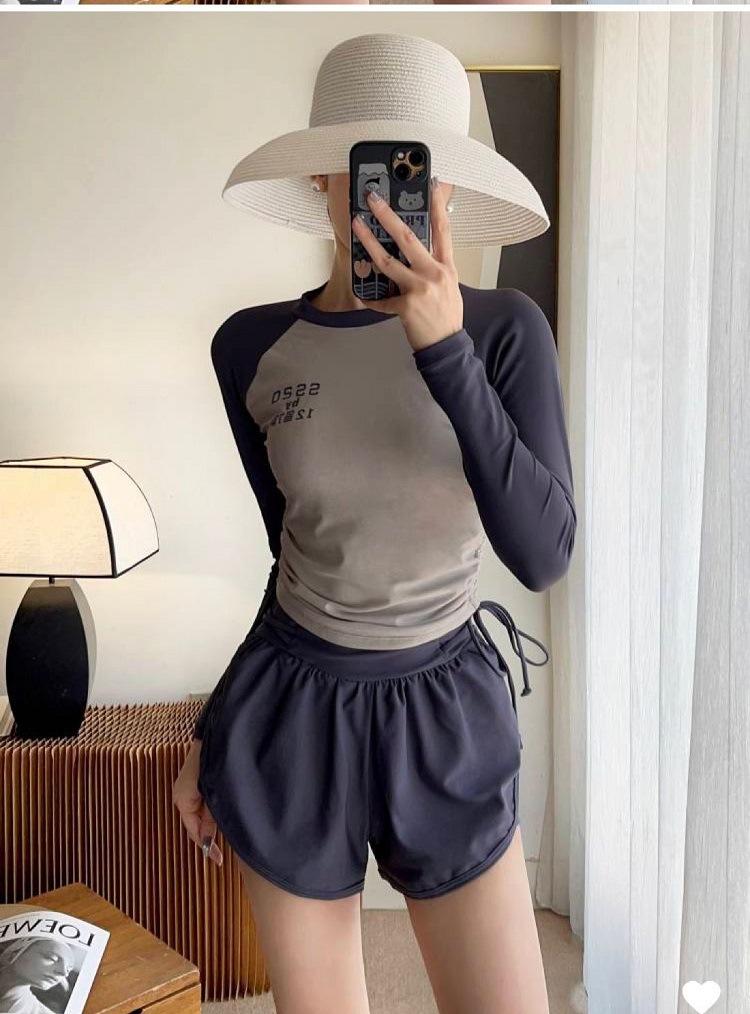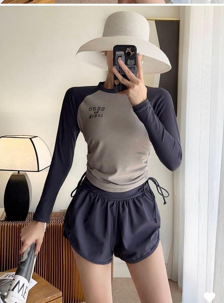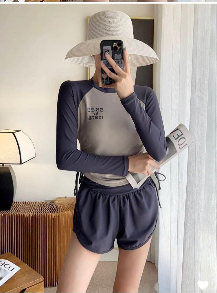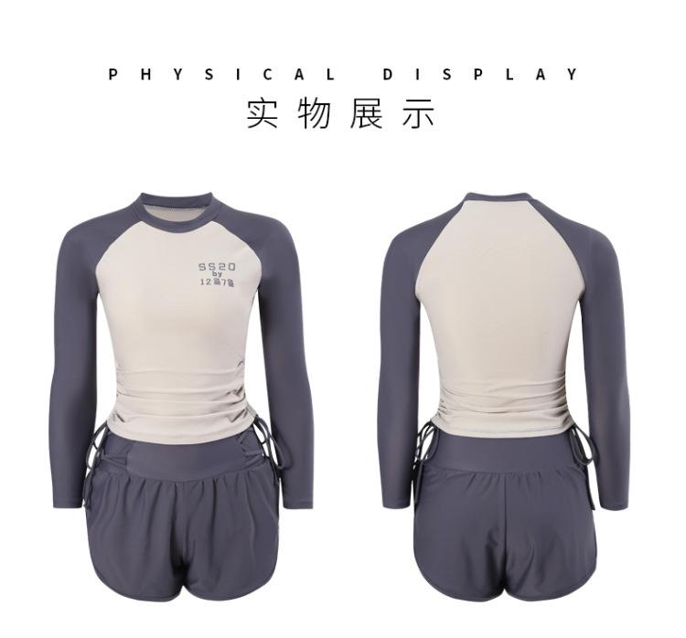 Traje de baño de manga larga y corte dividido para niñas 2025 Nuevo estilo deportivo, aspecto adelgazante y que cubre la piel, traje de baño conservador de moda con protección solar para niñas