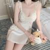 Uniforme nupcial de boda blanco sexy puro deseo encaje profundo V perspectiva pijama mono traje cos lencería sexy