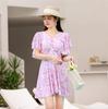 Nuevo traje de baño bóxer floral holgado de talla grande de una pieza, conservador, adelgazante, que cubre el vientre, traje de baño de talla grande para mujer