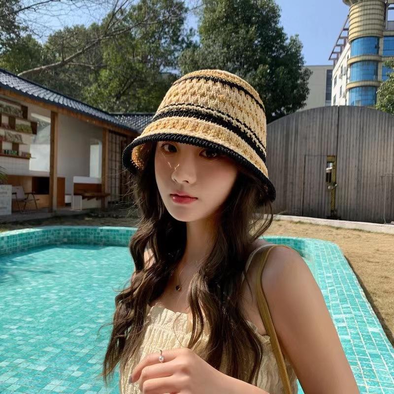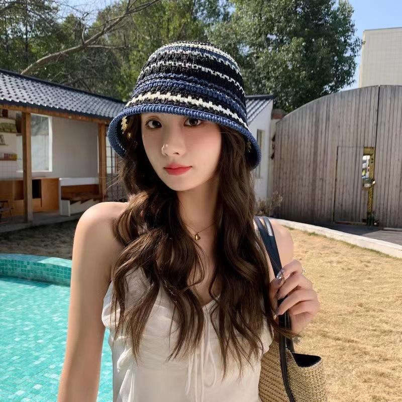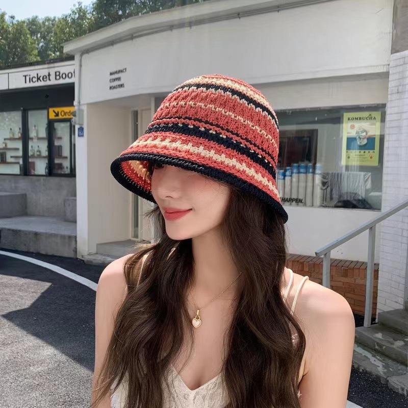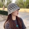 Sombrero de pescador de punto a rayas para mujer, gorro de pescador transpirable, fino y moderno, tipo cubo