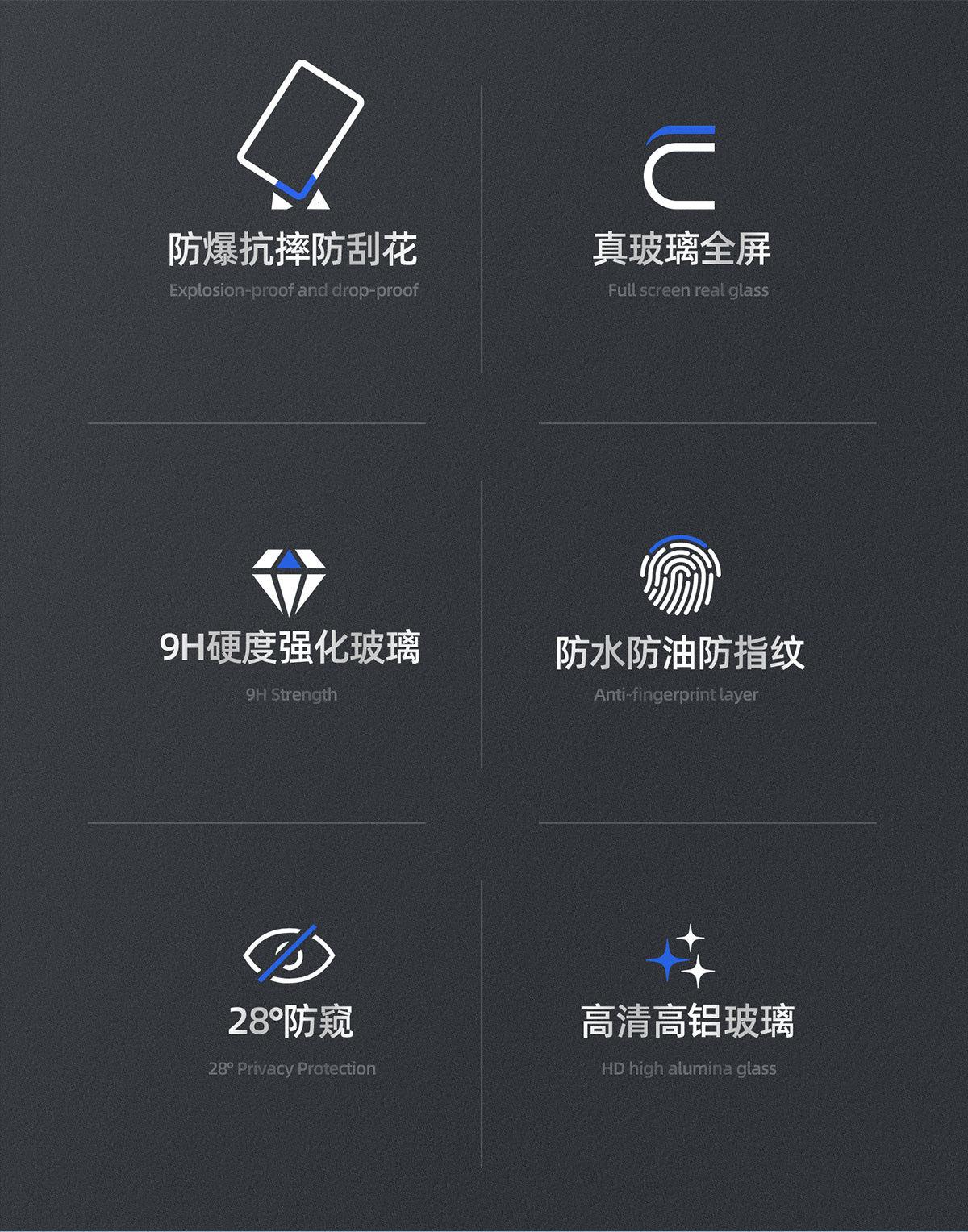 HD, anti-fingerprint, Anti-peeping, Automatic repair