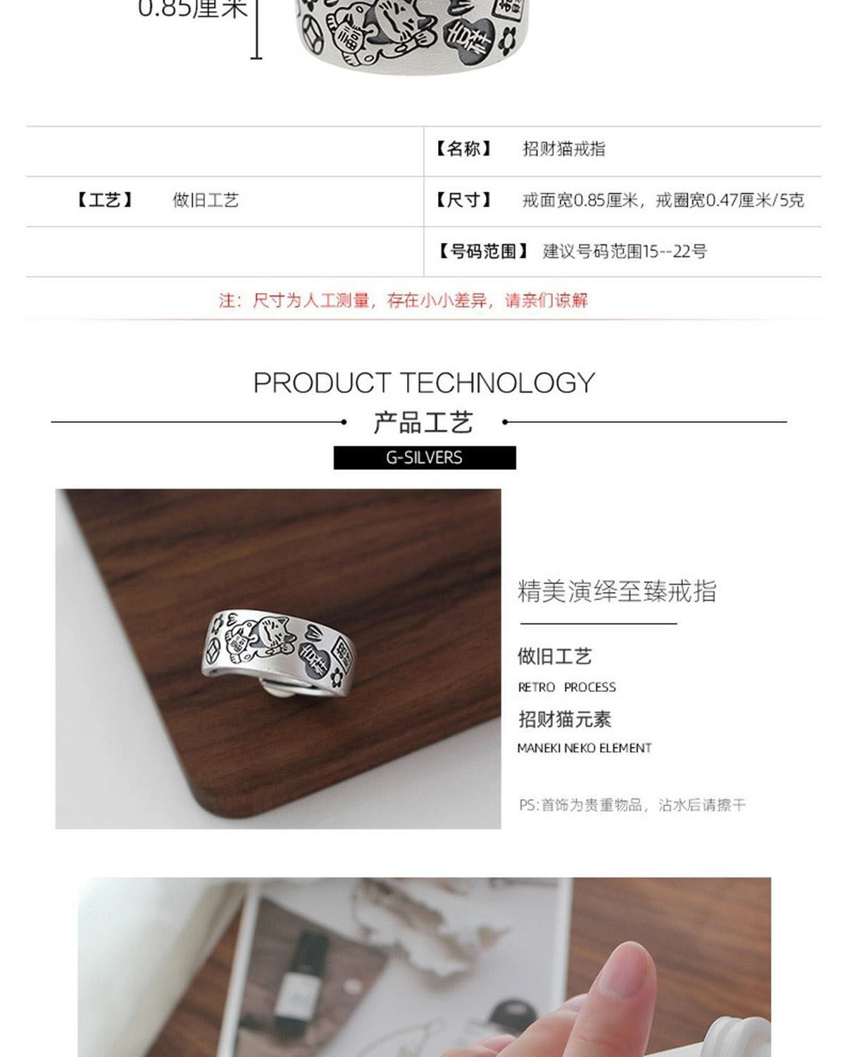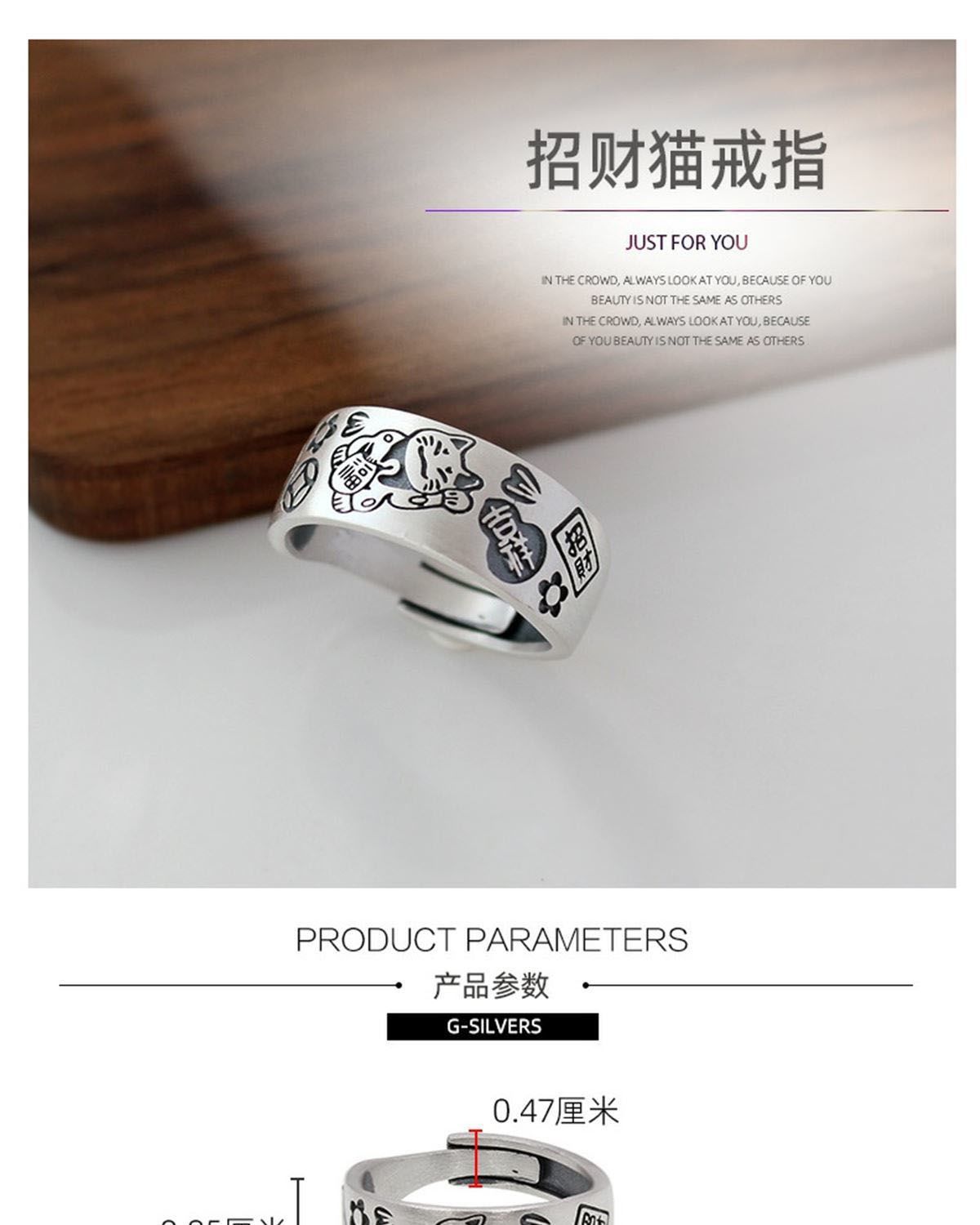 Anillo de Gato de la Suerte diseño nicho moneda anillo ancho para hombre y mujer estilo chino anillo para dedo índice moda nacional