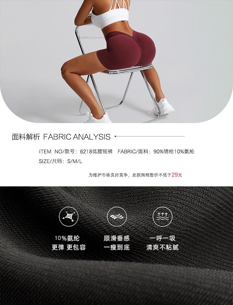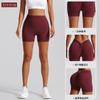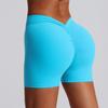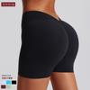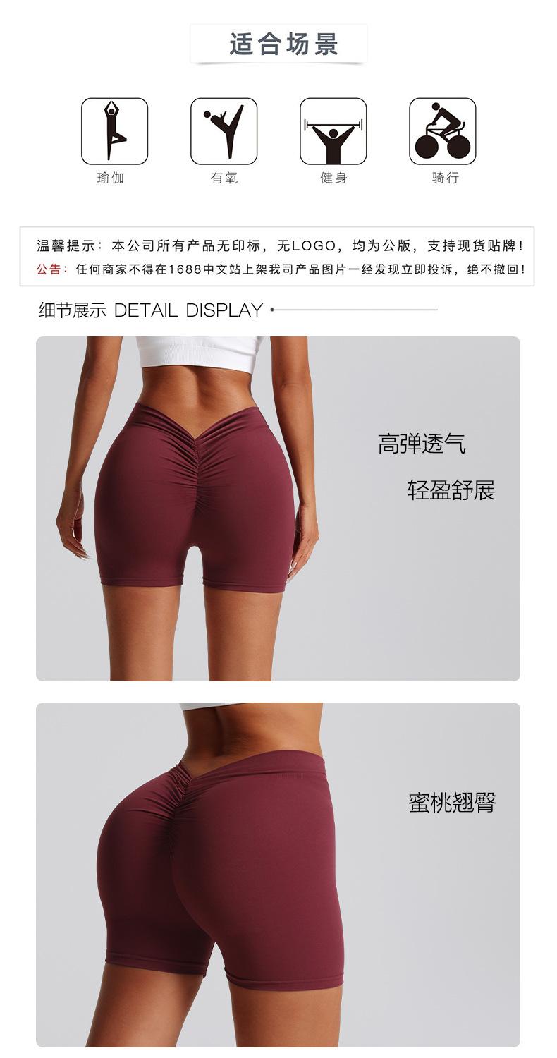 Pantalones cortos de yoga deportivos de tres cuartos ajustados para mujer con lijado cruzado, cintura en V plisada, color sólido, melocotón, cadera, para deportes, correr, fitness