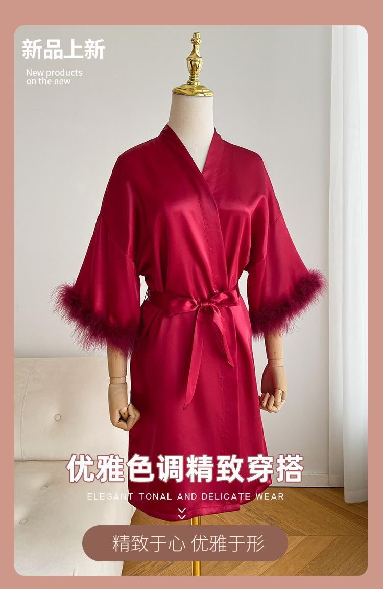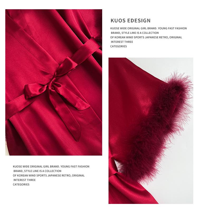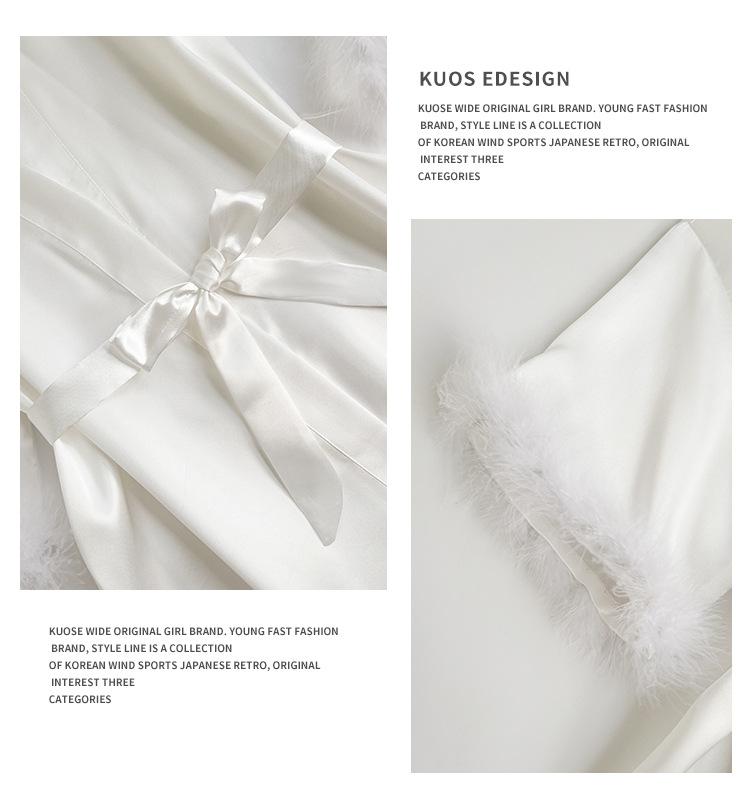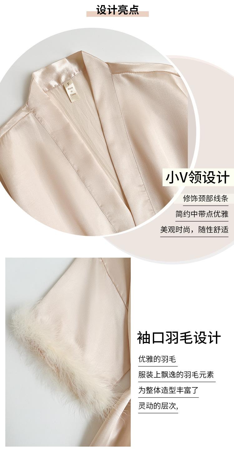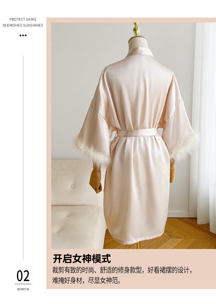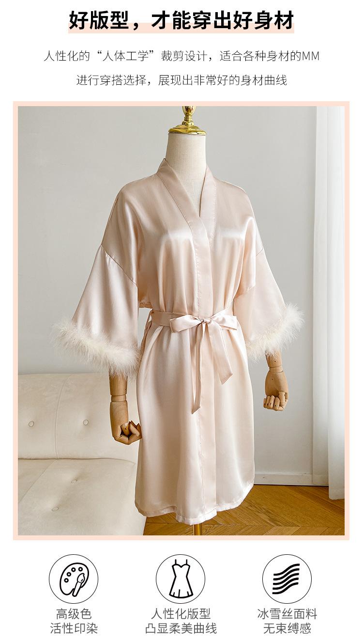 Camisón de Estilo Francés para Mujer Verano de Alta Gama Nuevo Estilo 2024 Sexy Bata de Mañana Pijama de Seda Imitación Manga Larga Bata Exterior Primavera y Otoño