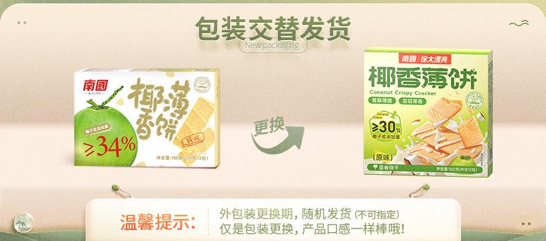 Panqueque de coco Nanguo 160g especialidad de Hainan (dulce) Sabor a galleta crujiente, bocadillo al por mayor