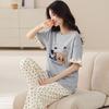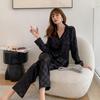[Una generación de cabello] Primavera y Otoño verano para mujer delgado manga larga pantalones cuadros talla promedio lunar negro pijama para casa