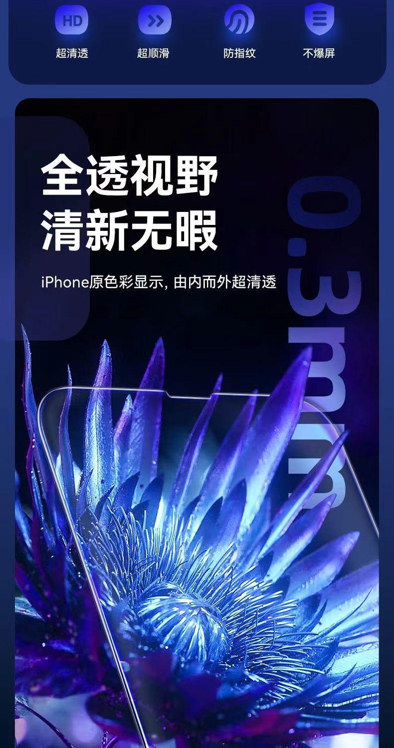 Película para Teléfono Móvil Adecuada para Apple 16pro Película Transparente de Media Pantalla HD 14pro Corona Adhesivo AB 13 Película Templada para Teléfono Móvil