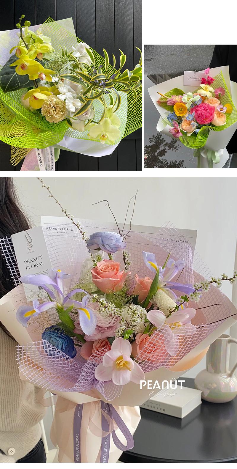 Hilo de embalaje floral de gasa hueca de color macarrón, estilo coreano, material floral