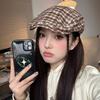 Sombrero estilo americano, estilo universitario retro, a cuadros, para mujer, nuevo verano 2024, informal, combinable, con cabeza grande