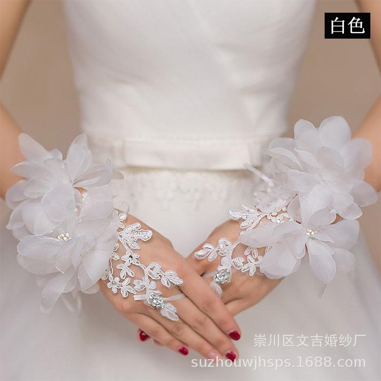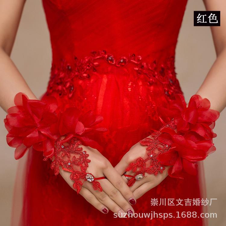 Vestido de novia, guantes de boda, flor roja, blanco lechoso, dedos abiertos, talla grande, con cordones, hada, sencillo, corto, foto