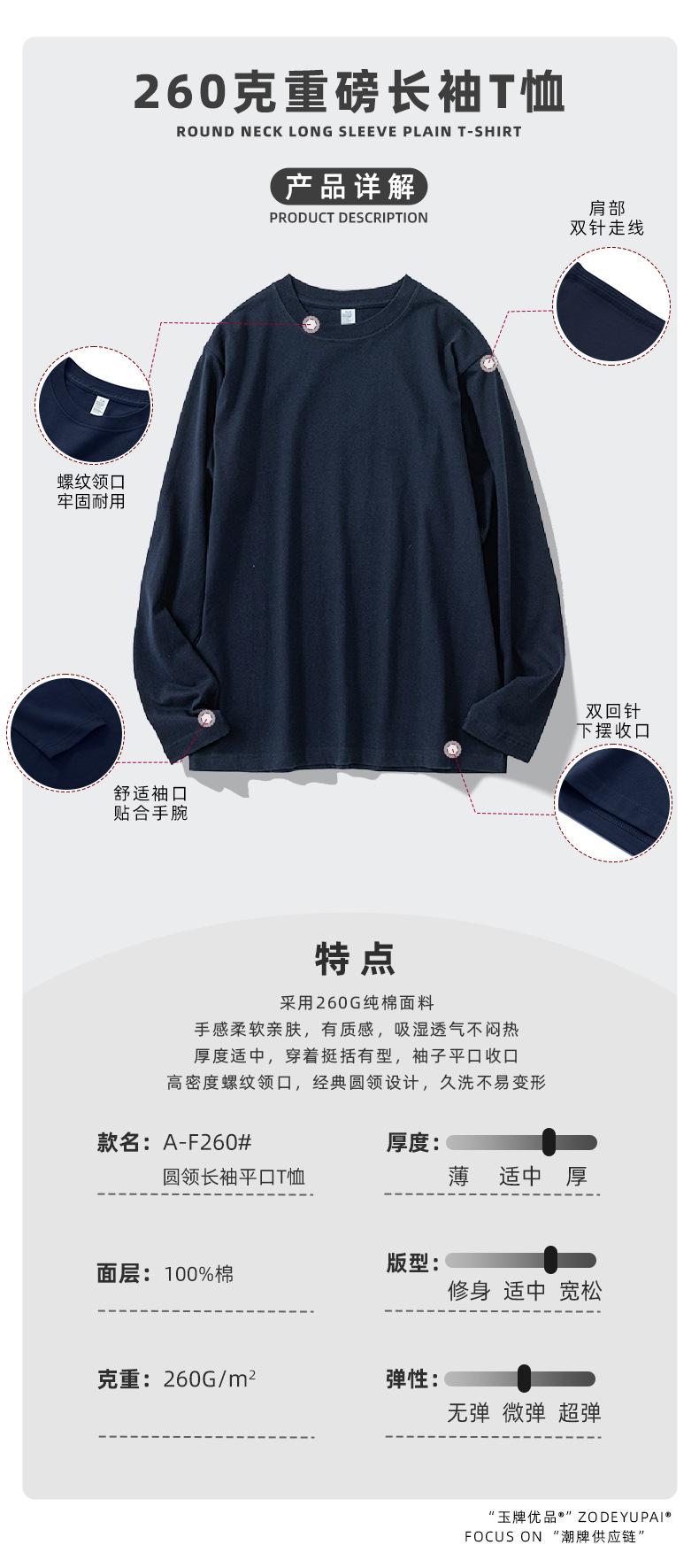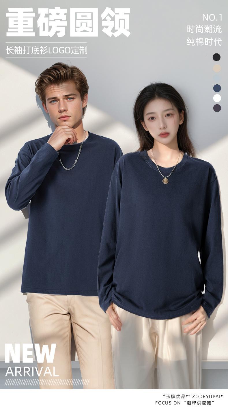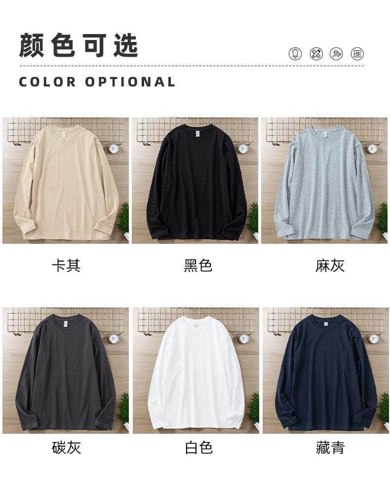 Camiseta de manga larga de algodón peinado con cuello redondo, color sólido y pesado de 260 g, para hombre y mujer, informal, top cultural con logotipo impreso personalizado.