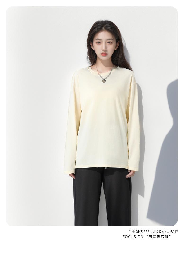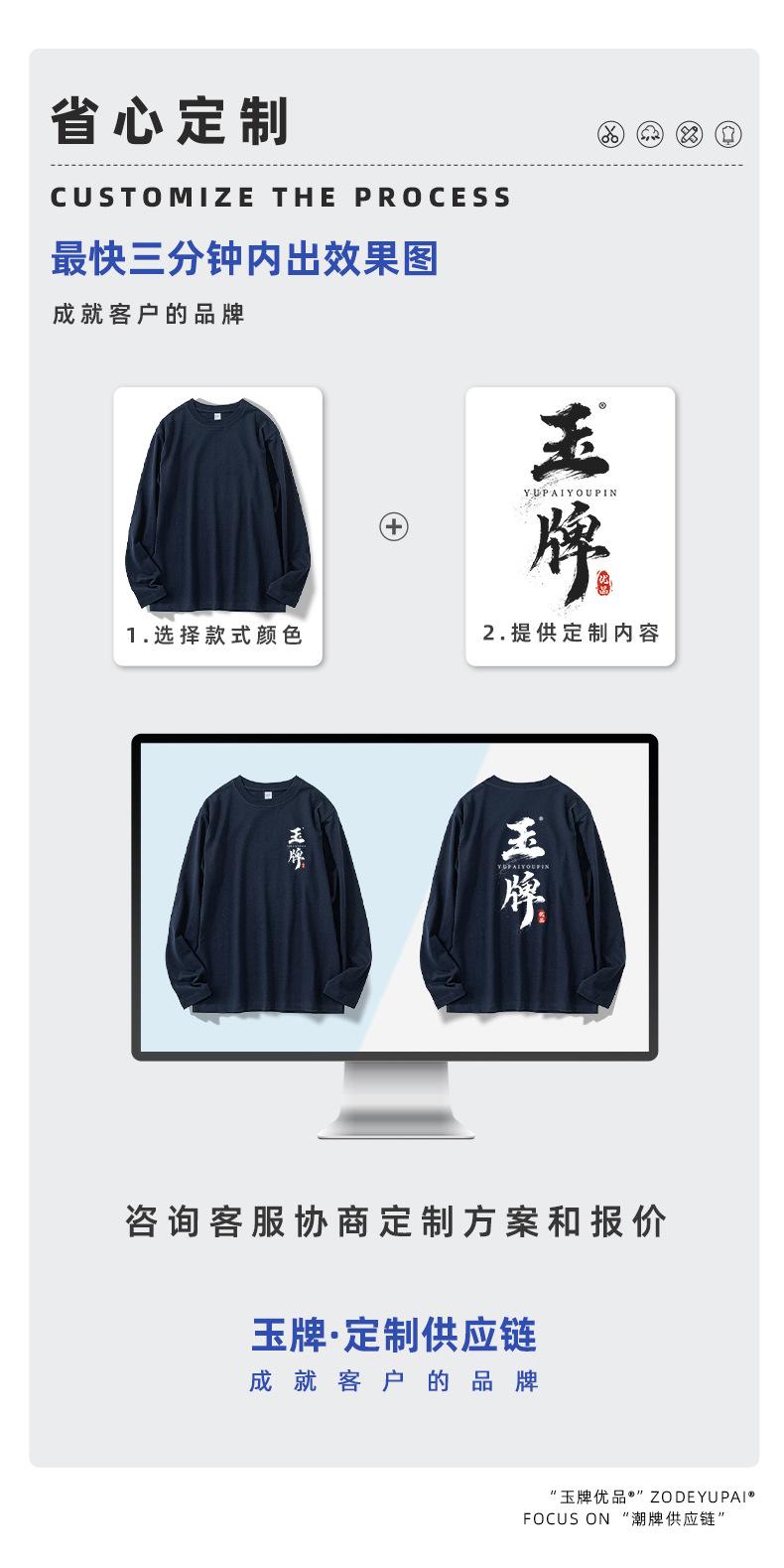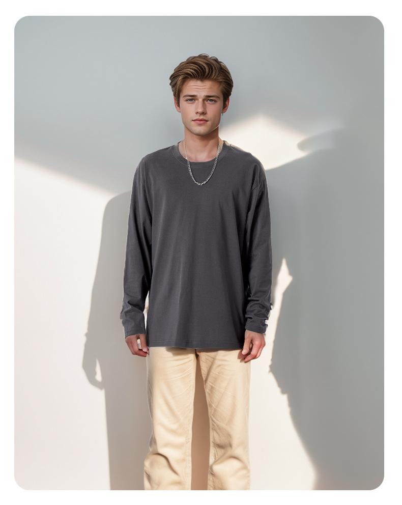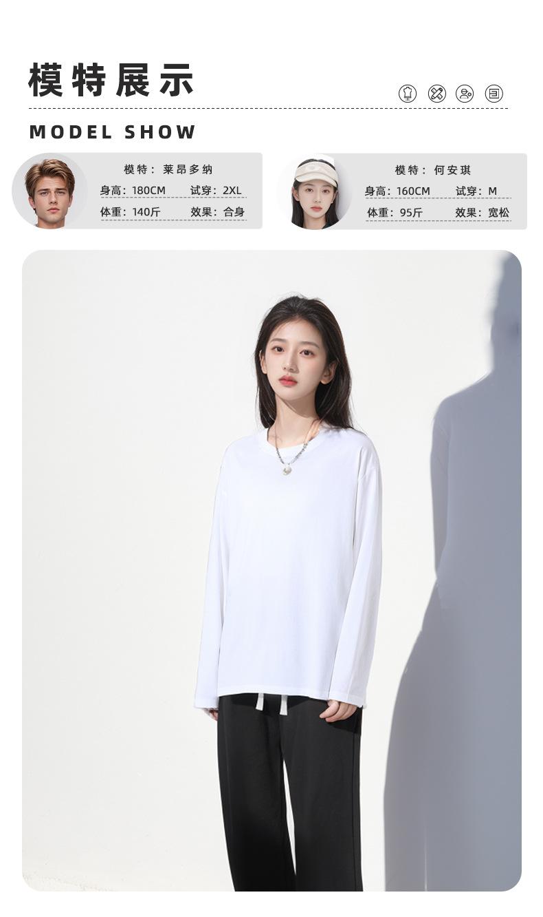 Camiseta de manga larga de algodón peinado con cuello redondo, color sólido y pesado de 260 g, para hombre y mujer, informal, top cultural con logotipo impreso personalizado.
