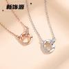 Collar de cadena doble de Moebius con incrustaciones de diamantes, estilo lujoso y ligero, para mujer, con colgante geométrico de anillo, cadena para clavícula.