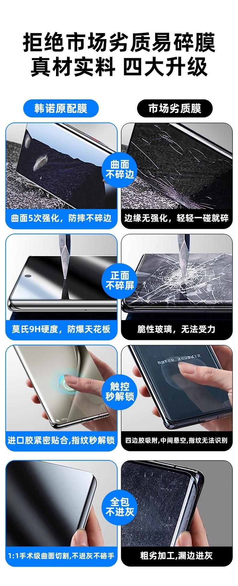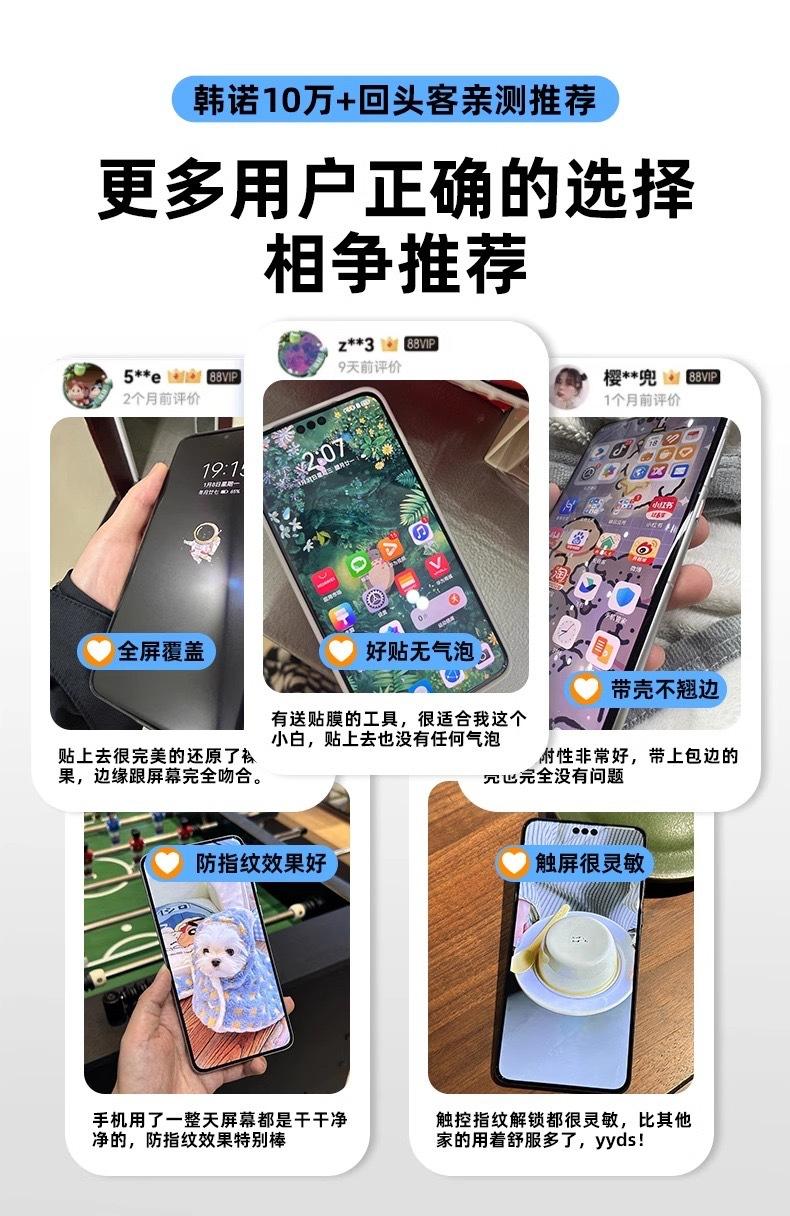 5. Adoptando un diseño de borde de arco 2.5D y tecnología de alta tecnología de borde de arco grande, la película se ajusta perfectamente al teléfono móvil y el borde se siente más suave