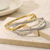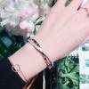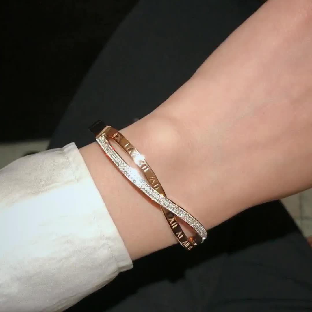 Corea del Sur moda elegante pulsera cruzada con números romanos de diamantes completos acero titanio chapado oro rosa 18K pulsera femenina que no se desvanece