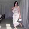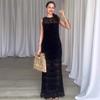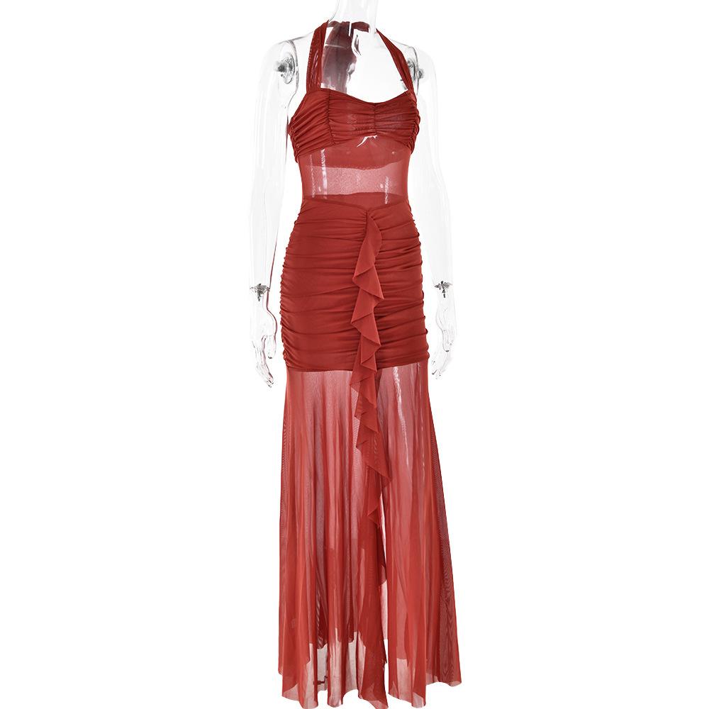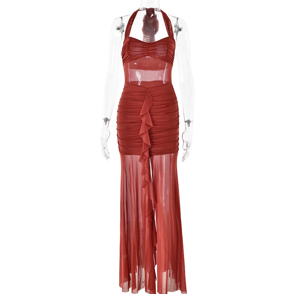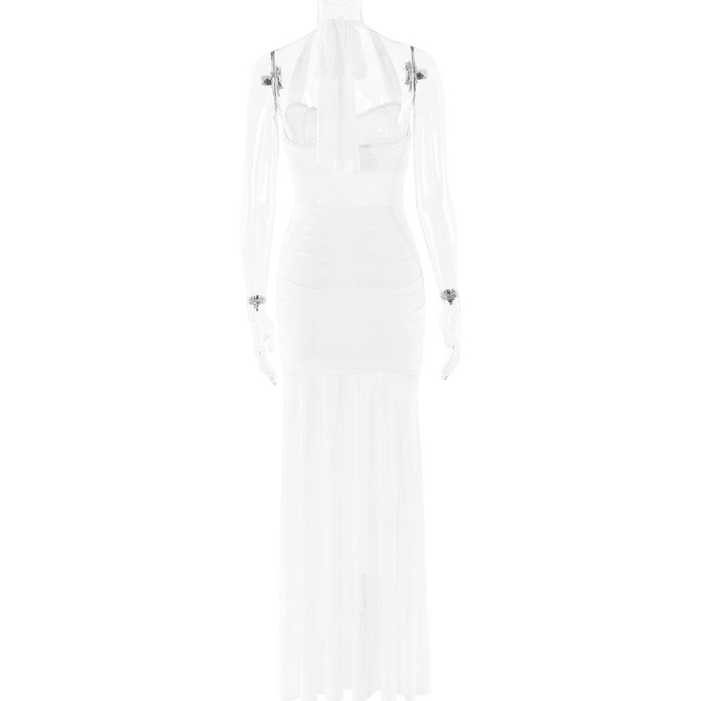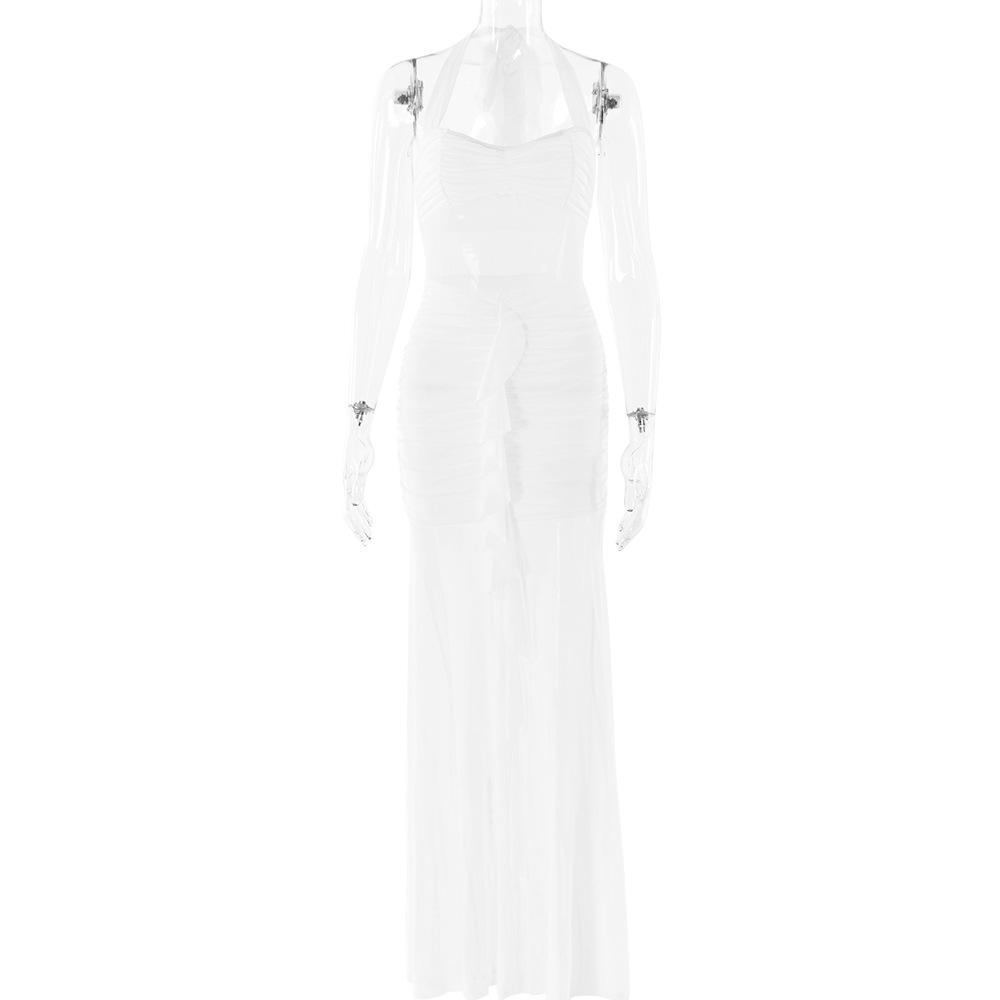 Estilo europeo y americano transfronterizo Amazon nuevo vestido de mujer sexy con cuello halter, sin mangas, plisado en la espalda, sin espalda y corte ajustado