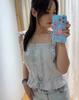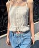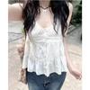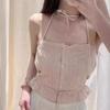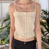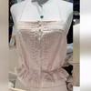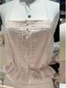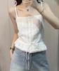 Camisola de Encaje Estilo Bm de Un Solo Botón para Mujer Top Tubo Cuello de un Hombro Cordón Ajustable Cintura con Cordones Top Corto de Moda