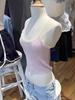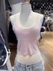 Chaleco de encaje de hilo rosa estilo BM, cuello en U, tirantes cortos deshilachados, top de ombligo de cintura alta con diseño de chica sexy BM Pure Desire para mujer