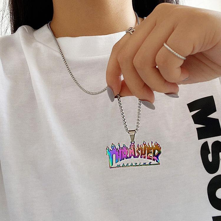 Collar de acero de titanio con colgante de celebridad de internet de hip hop para hombres y mujeres, estilo TikTok, personalizado, estilo discoteca