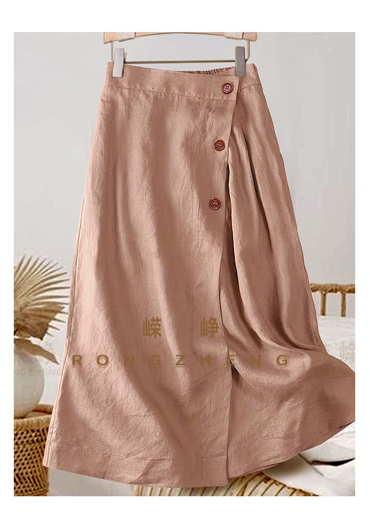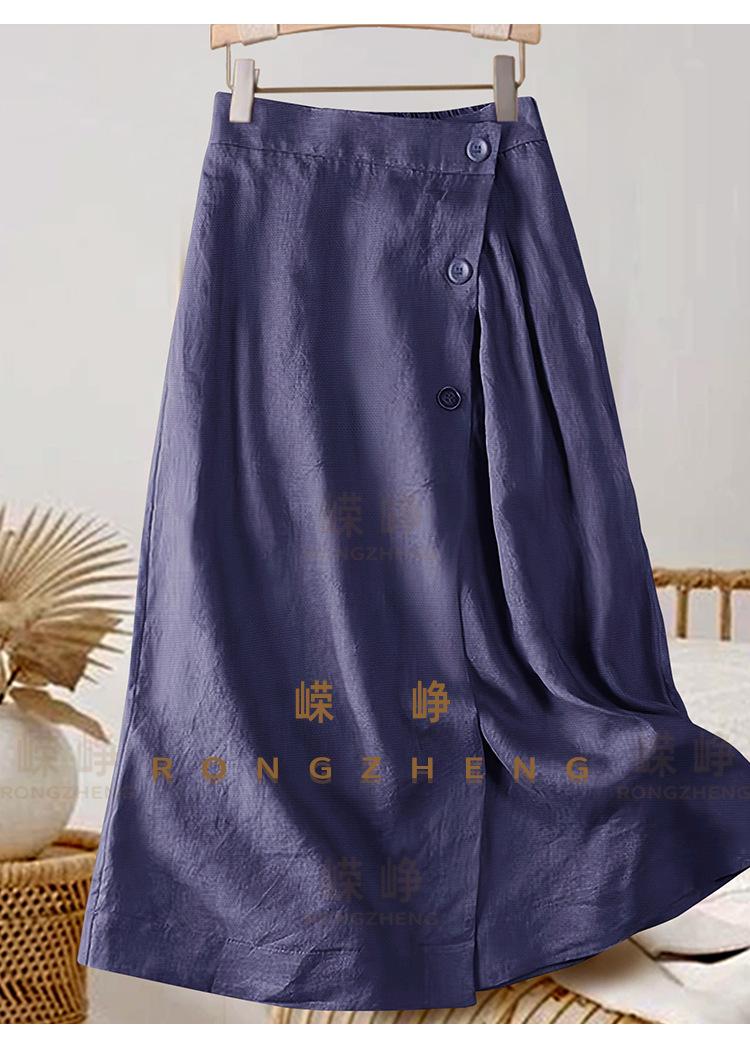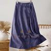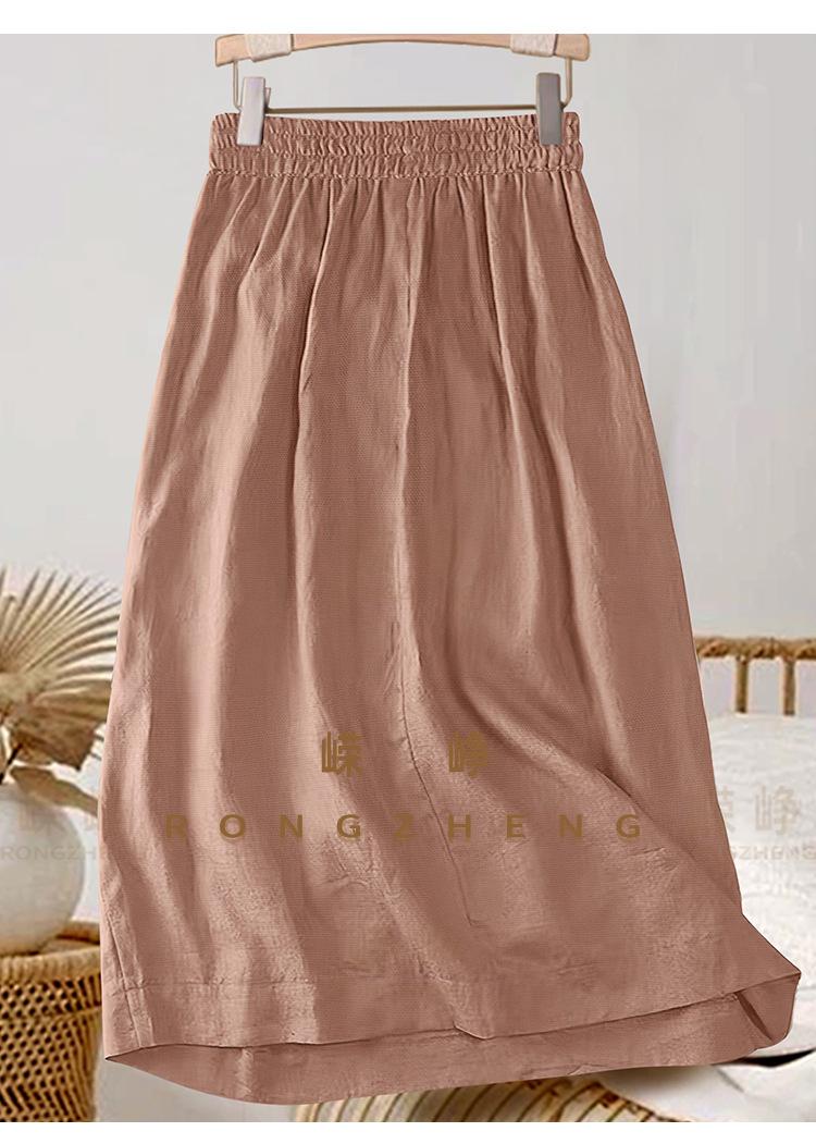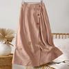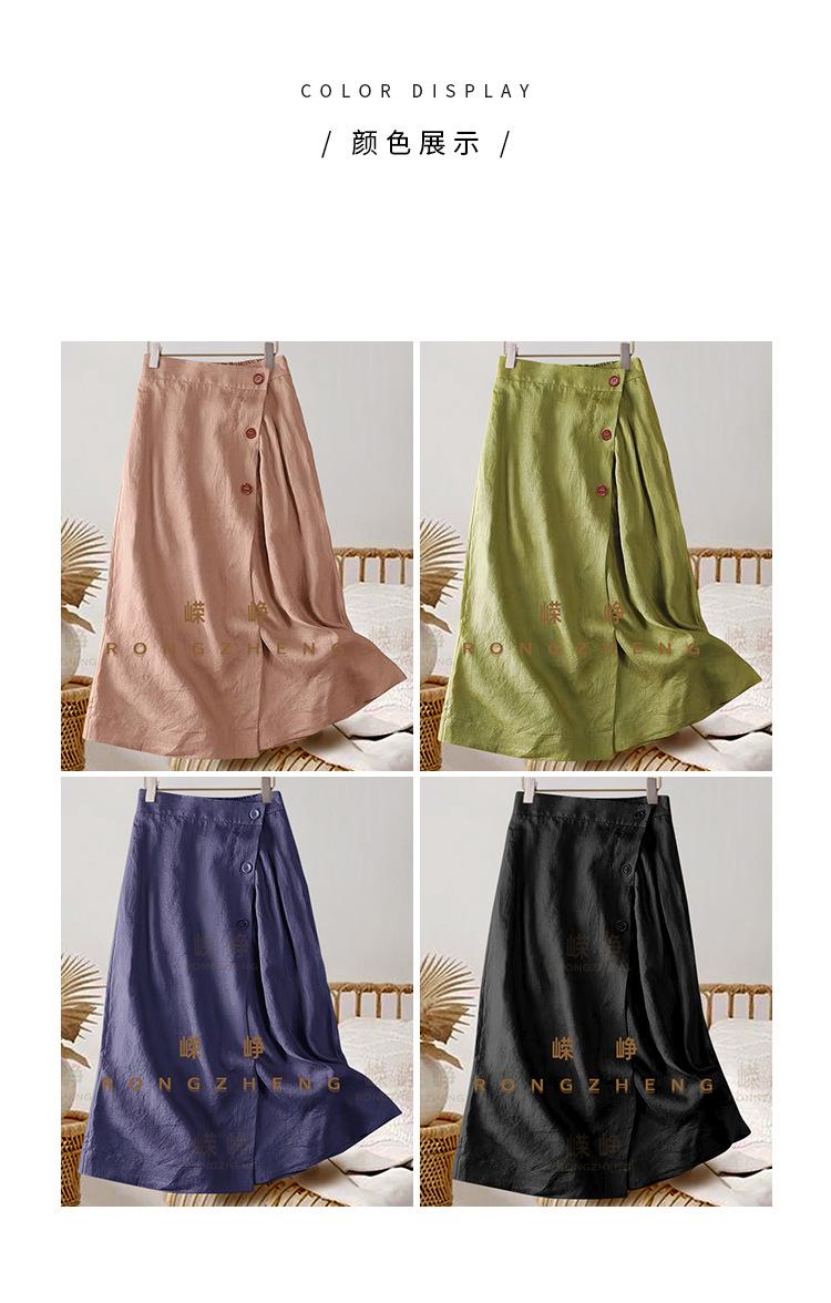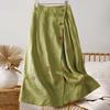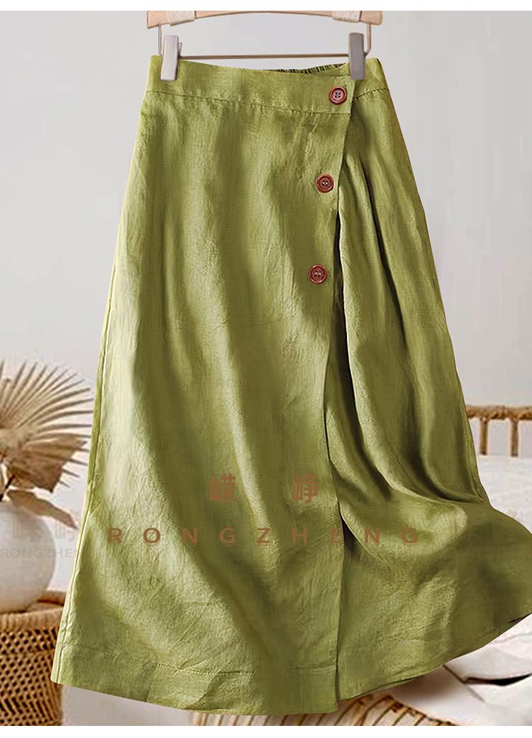 Falda fina de lino y algodón para mujer, estilo artístico, irregular, semielástica, holgada, adelgazante, de cintura alta, corte A, longitud media