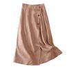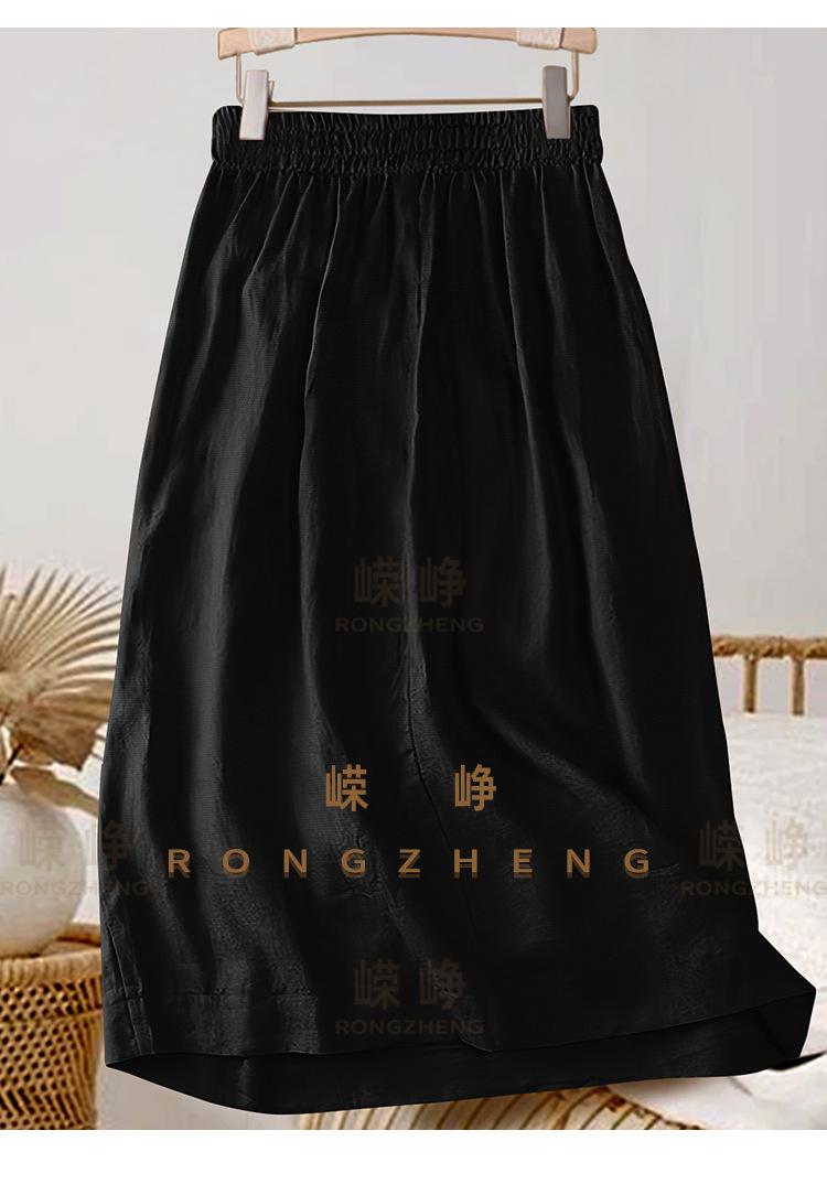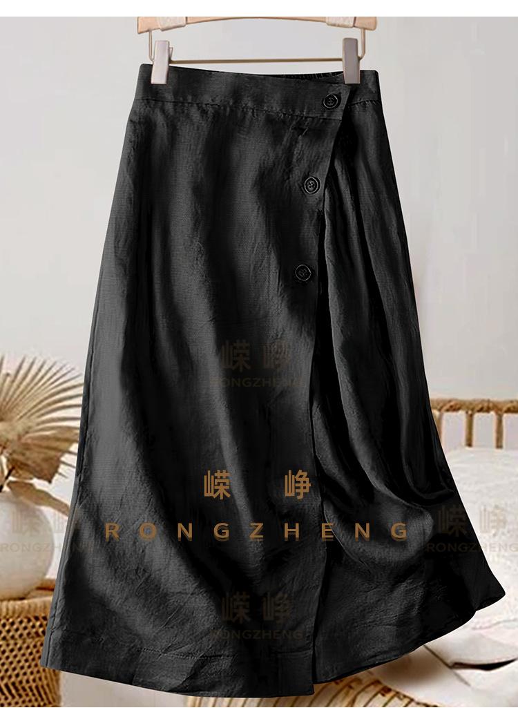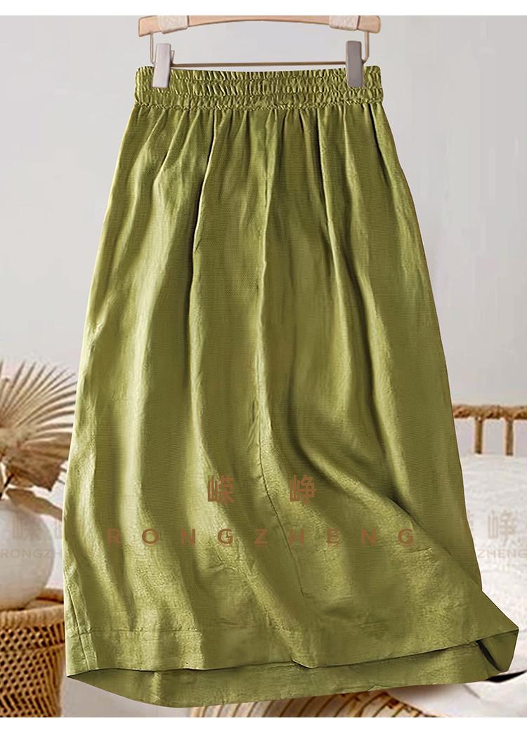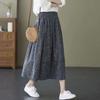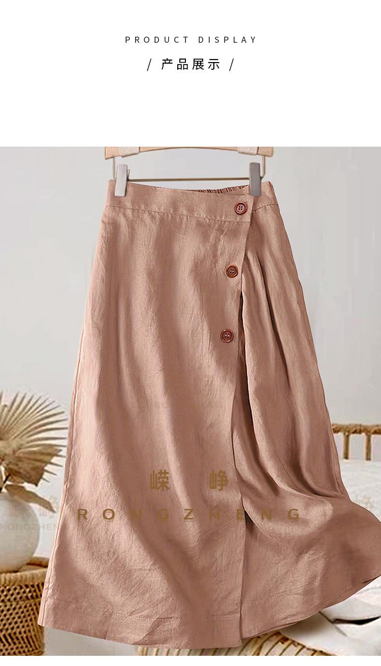 Falda fina de lino y algodón para mujer, estilo artístico, irregular, semielástica, holgada, adelgazante, de cintura alta, corte A, longitud media