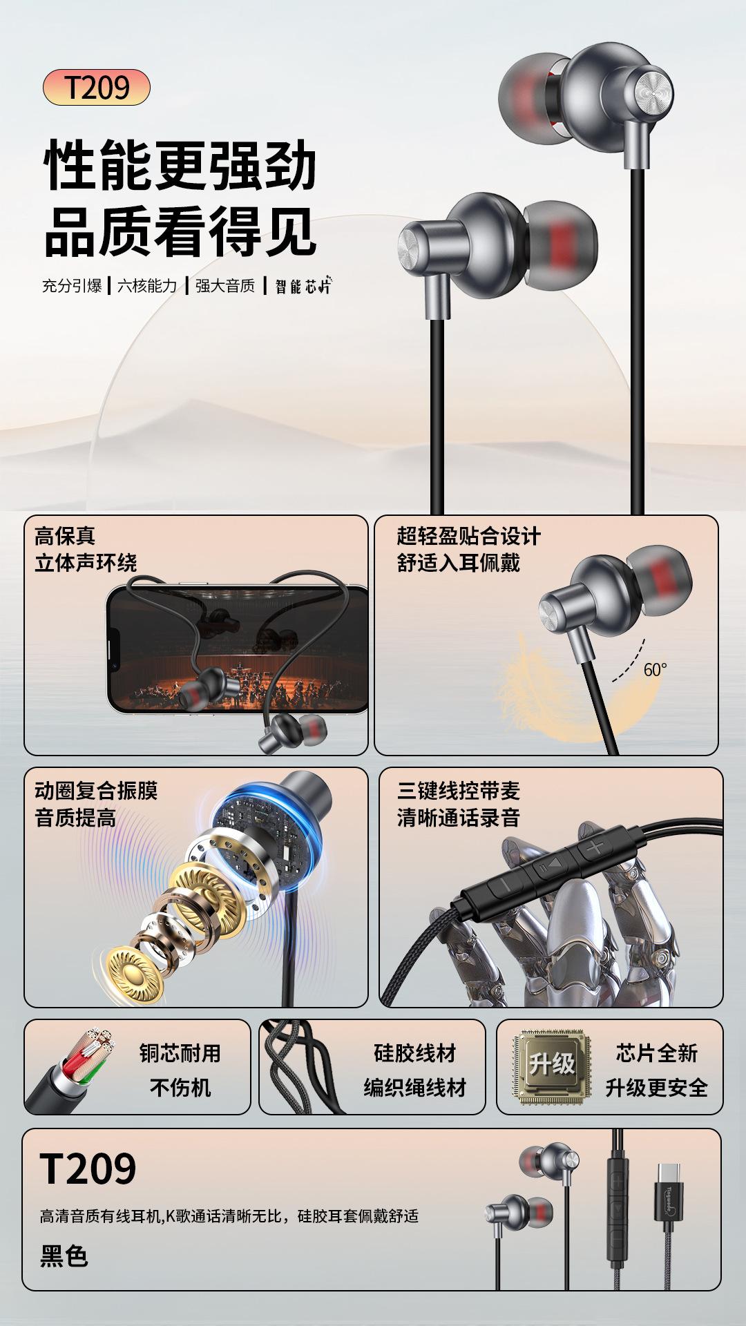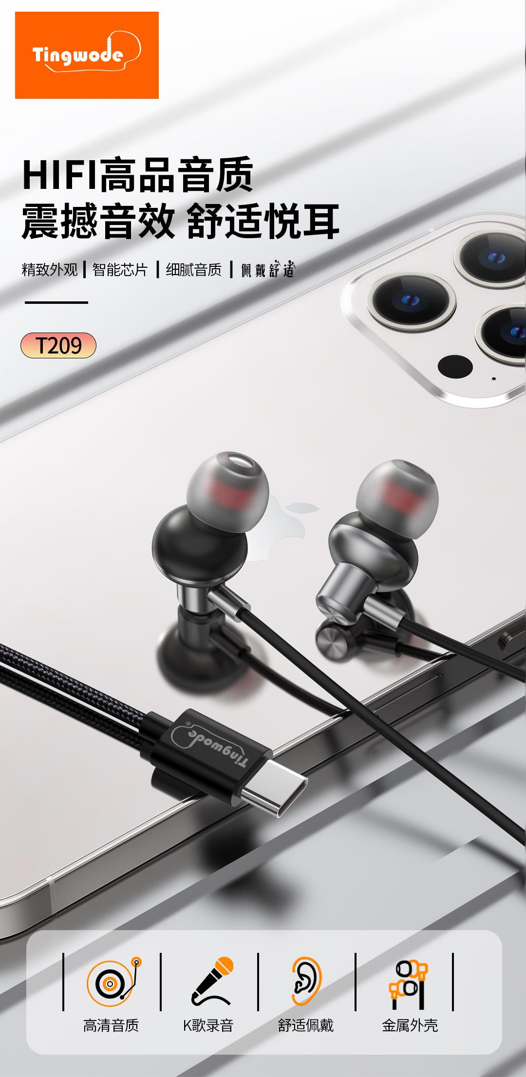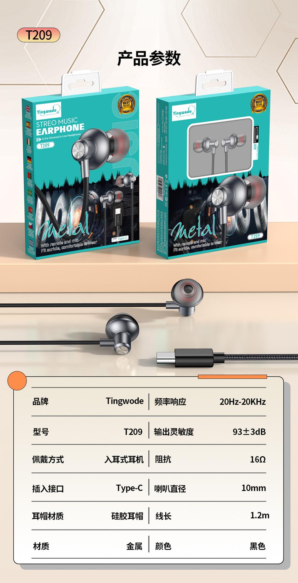 Auriculares intrauditivos metálicos nuevos y populares con cable tipo C, universales, totalmente compatibles, de alto valor cromático y alta calidad de sonido transfronterizos.
