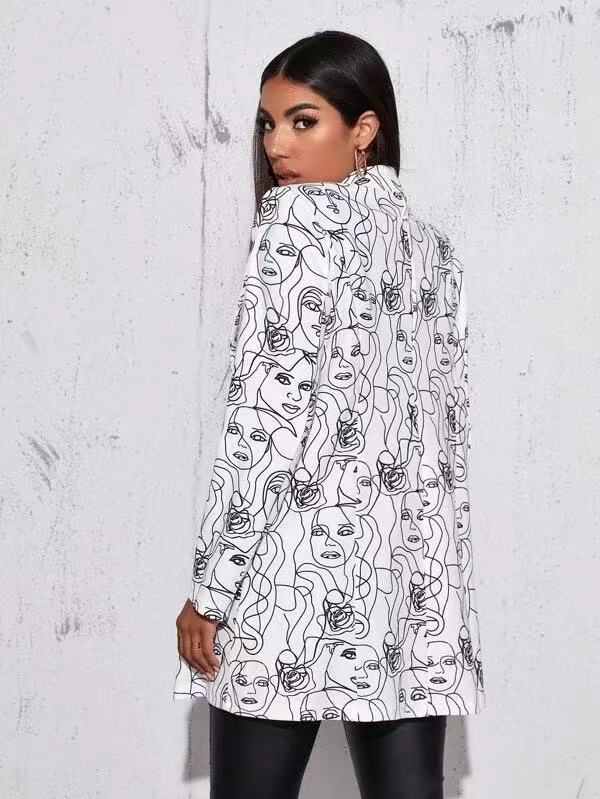 Comercio exterior transfronterizo Ropa de mujer europea y americana Amazon 2024 moda de primavera y otoño chaqueta casual estampada de longitud media traje pequeño