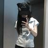 Gorra de Béisbol con Parche de Orejas de Gato para Niña Dulce de Pelo Corto, Sombrero de Simulador de Casa Muerta para Mujer, Gorra de Pato Yabi Meng House